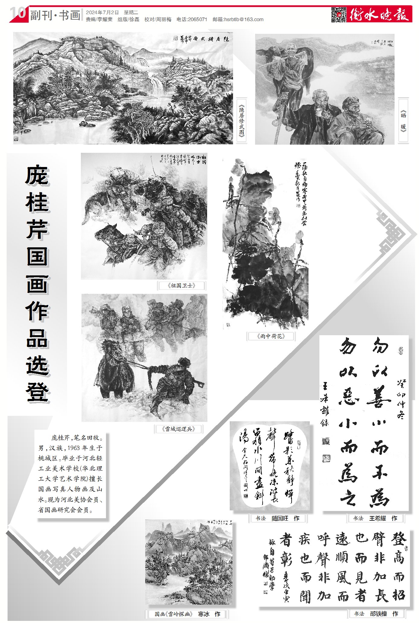 庞桂芹,笔名田牧。男,汉族,1963年生于桃城区。毕业于河北轻工业美术学校(华北理工大学艺术学院)擅长国画写真人物画及山水。现为河北美协会员、省国画研究会会员。