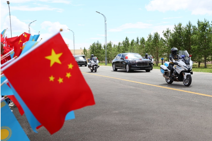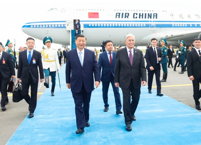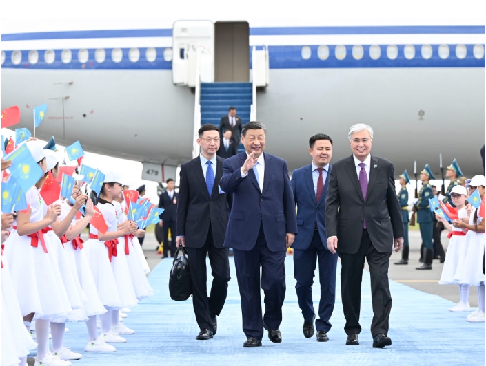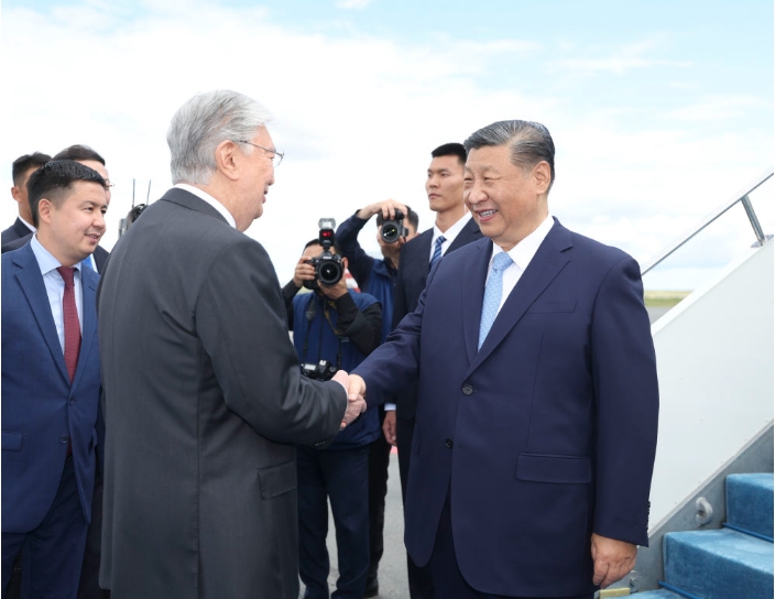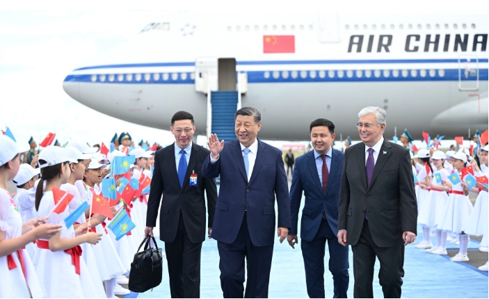 当地时间7月2日中午,国家主席习近平乘专机抵达阿斯塔纳,出席上海合作组织成员国元首理事会第二十四次会议,应哈萨克斯坦共和国总统托卡耶夫邀请,对哈萨克斯坦进行国事访问。