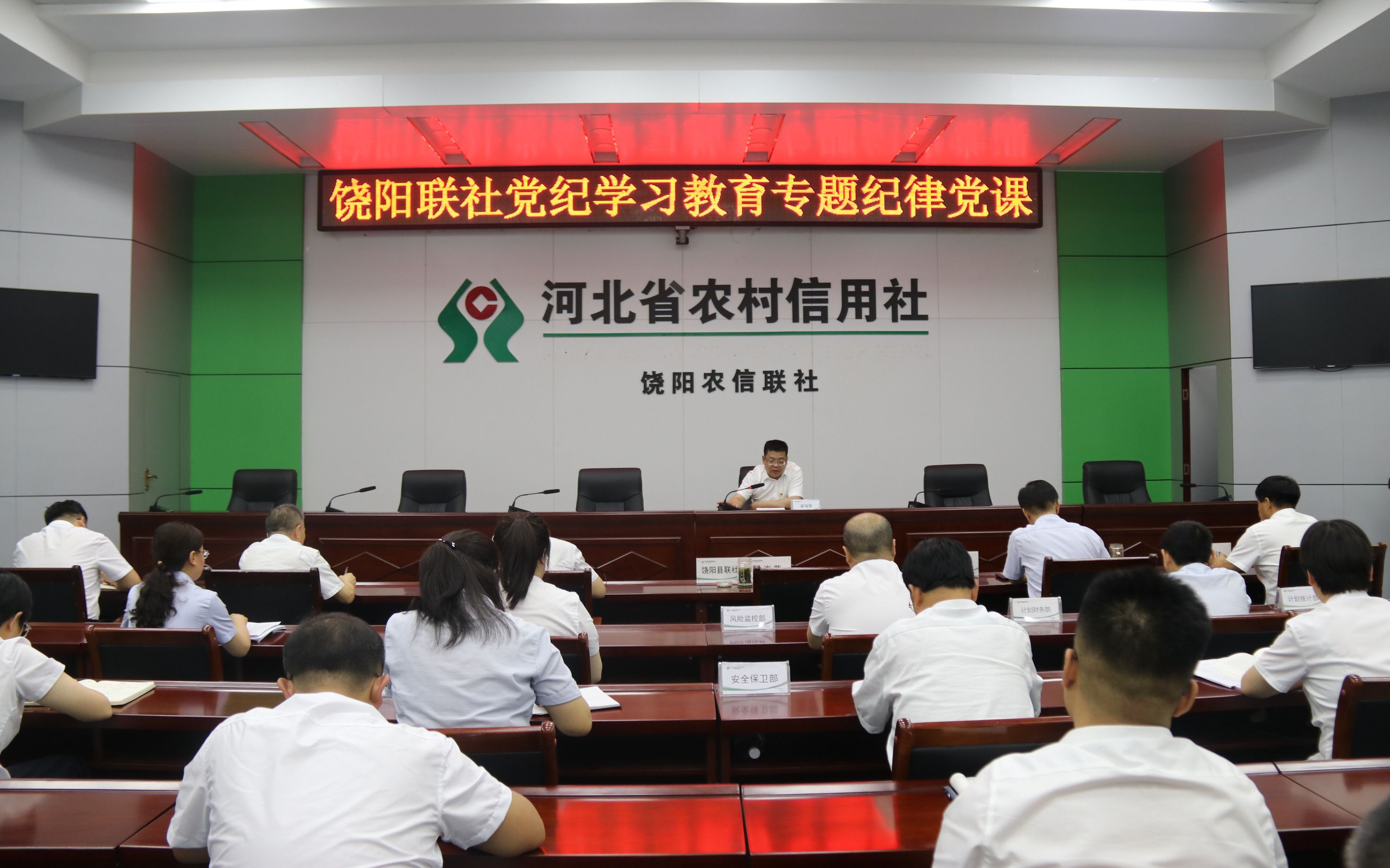 开展党纪学习教育专题纪律党课。结合党纪学习教育安排,饶阳联社党委书记、董事长梁海营讲授了党纪学习教育专题纪律党课,领导班子成员,机关中层党员干部、各党支部书记参加党课学习。党委书记、董事长梁海营以“严守党规党纪 强化党员责任”为题,紧扣“六项纪律”的主旨要义和规定要求,通过案例教育引导广大党员干部要有觉悟、讲奉献、守纪律,锤炼对党忠诚的政治品格,增强忠诚履职尽责的使命担当,为纵深推进全面从严治党、加快转型发展提供坚强纪律保障。
