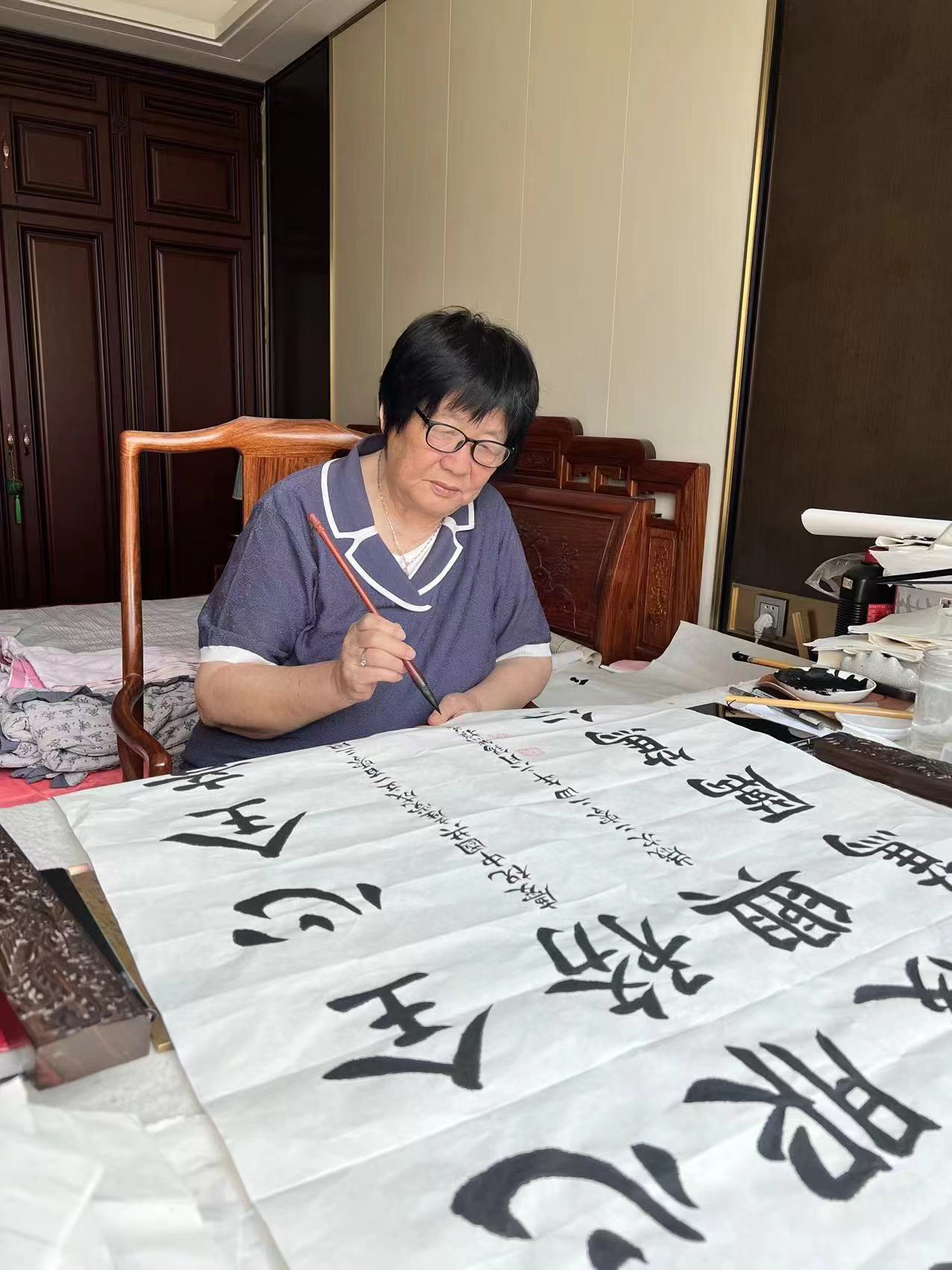 对书法的情有独钟,让张锡然找到了精神支柱,也给了她美的享受,这让她觉得练习书法是件特别有意义的事情。