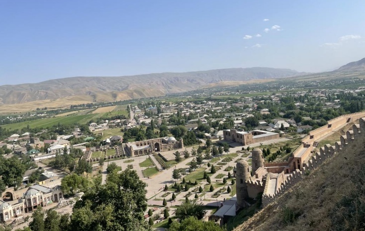 位于塔吉克斯坦杜尚别西北的吉萨尔古城,有着3000多年历史。有研究认为,张骞出使大宛回程途中曾经过此地。图为从吉萨尔古城城墙俯瞰城门与市镇。本报记者 曲颂 摄