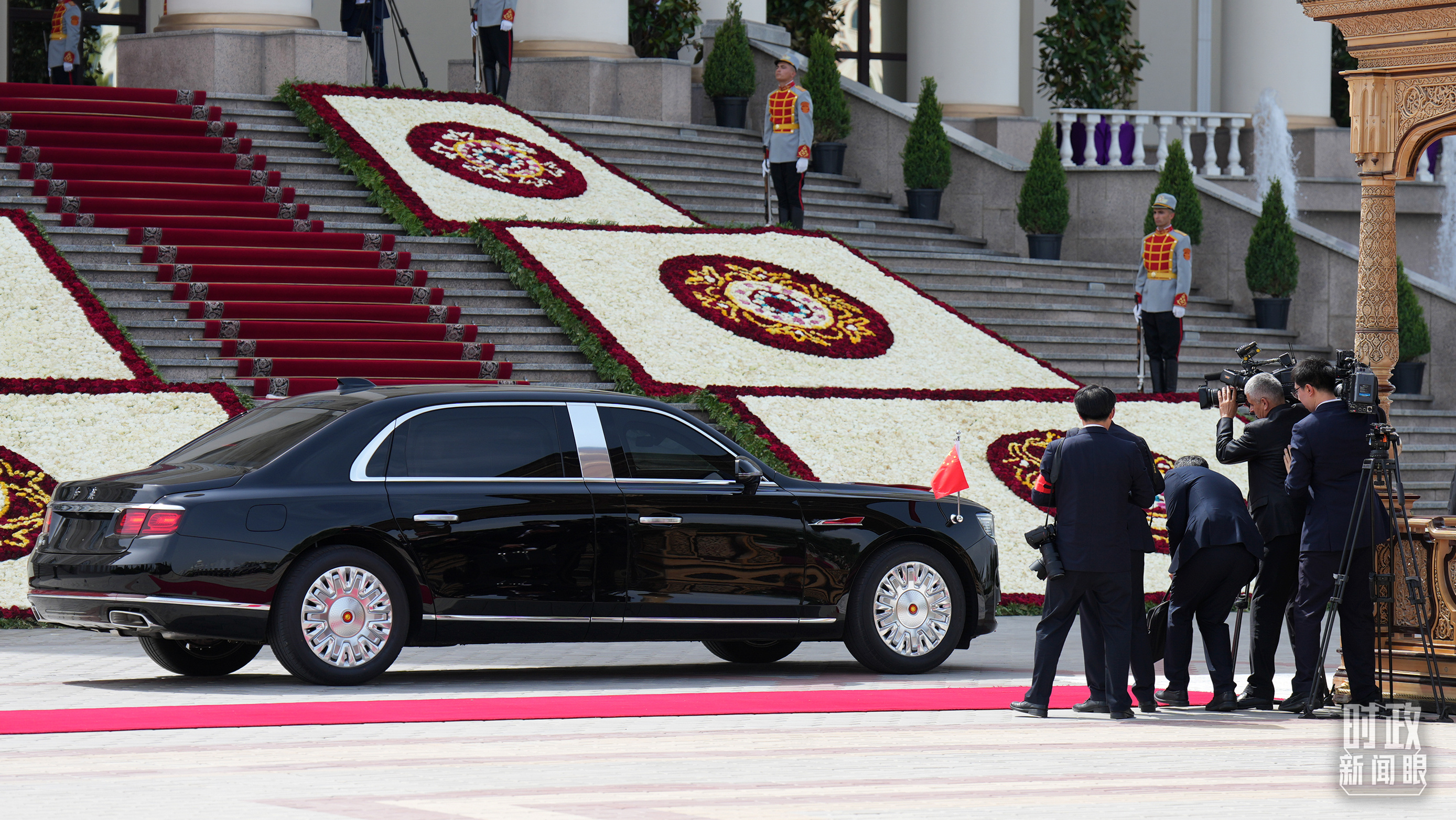 △习主席乘坐的红旗车抵达塔总统府。(总台记者李晋拍摄)