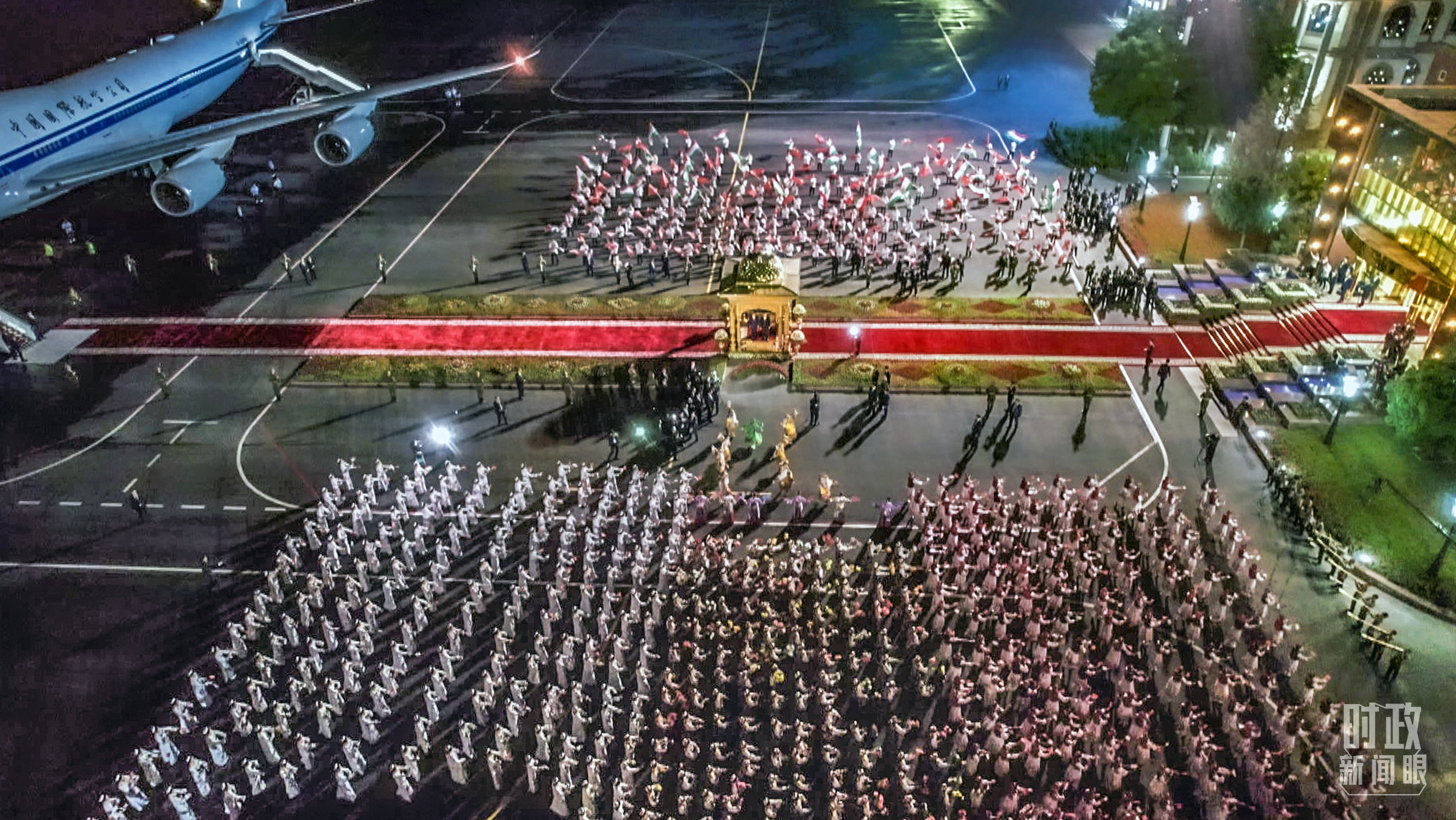 △塔方在机场举行的盛大迎宾仪式。(总台央视记者邢彬)