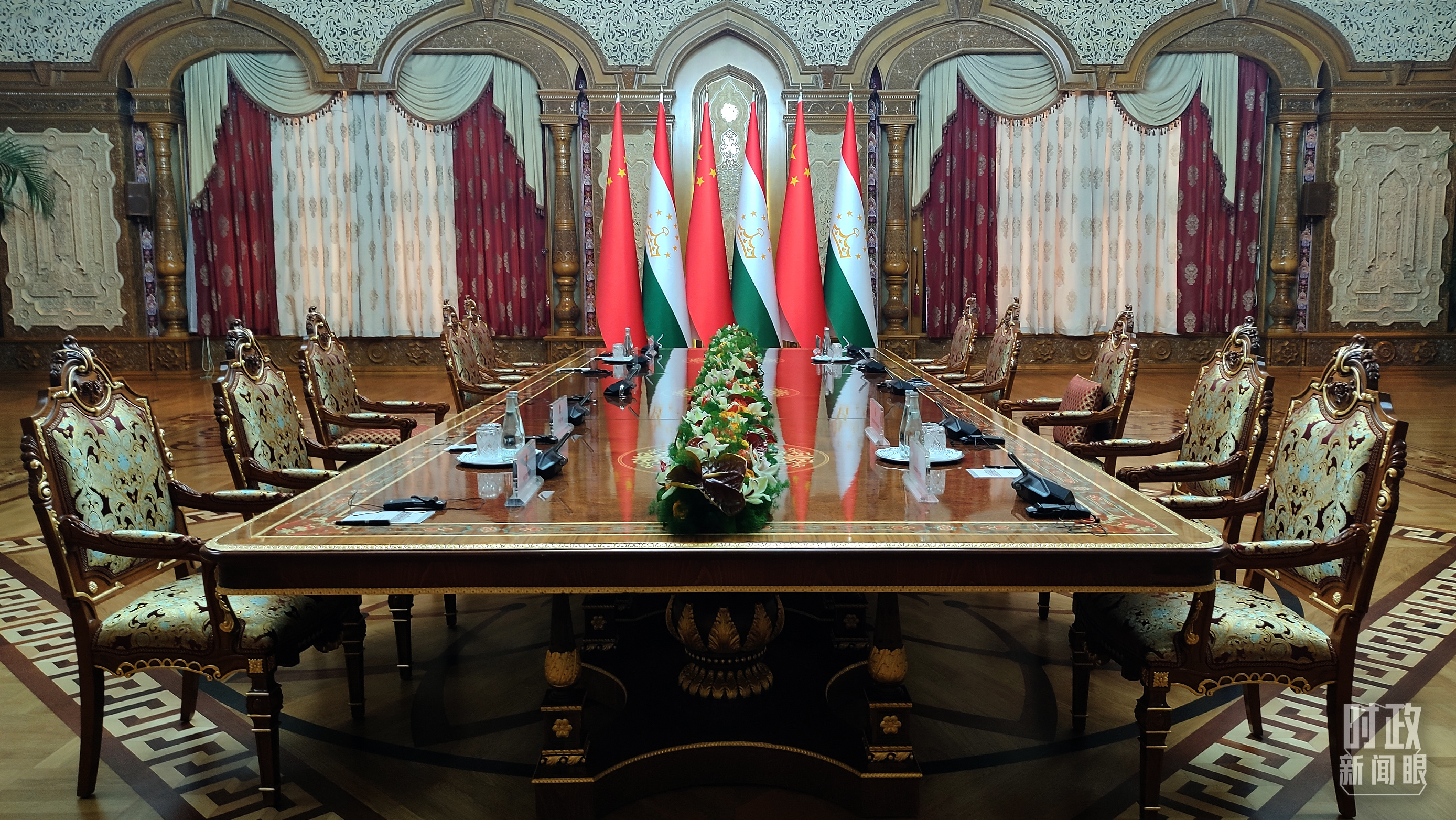 △中塔元首大范围会谈开始前的会场。(总台央视记者段德文拍摄)