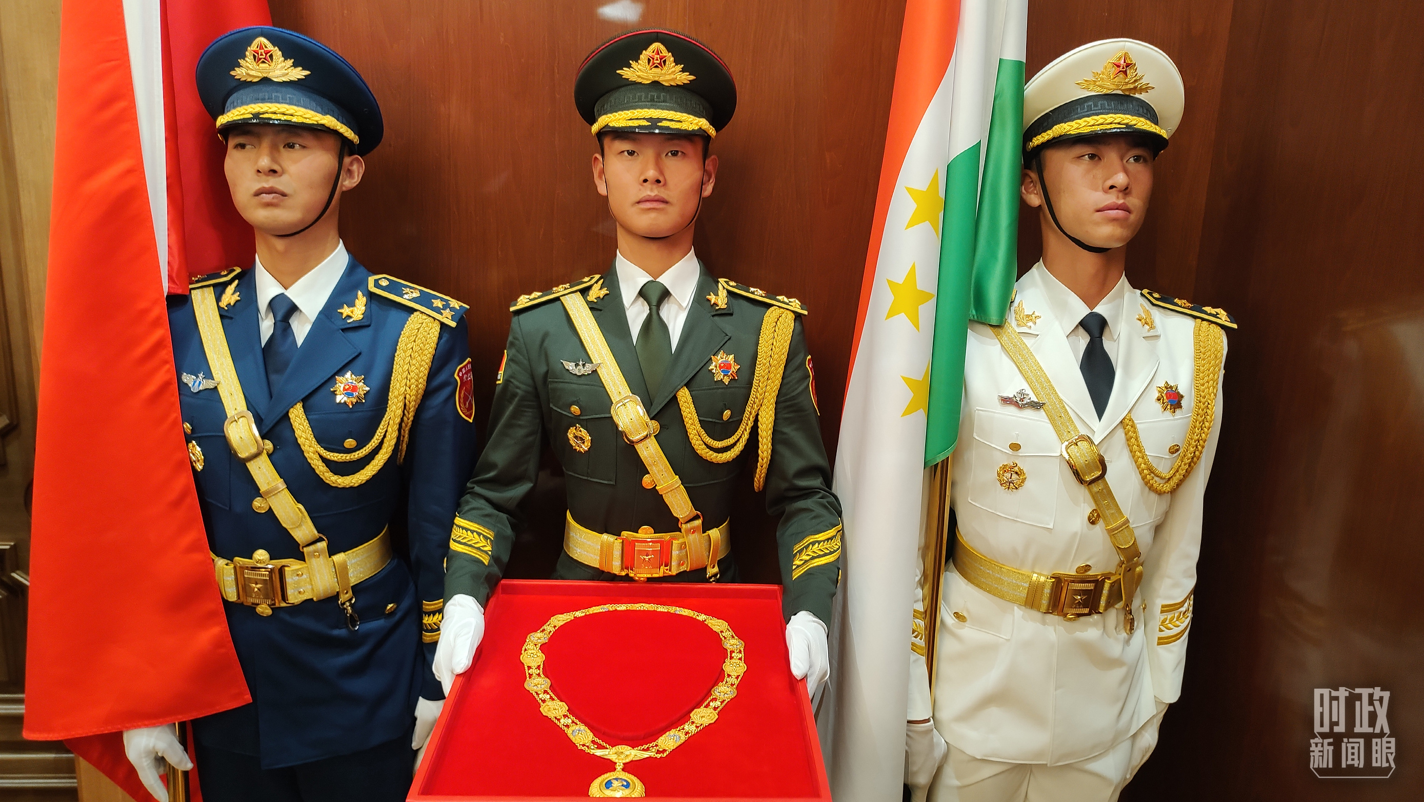 △中方仪仗兵护送“友谊勋章”入场。(总台央视记者薛冠南拍摄)
