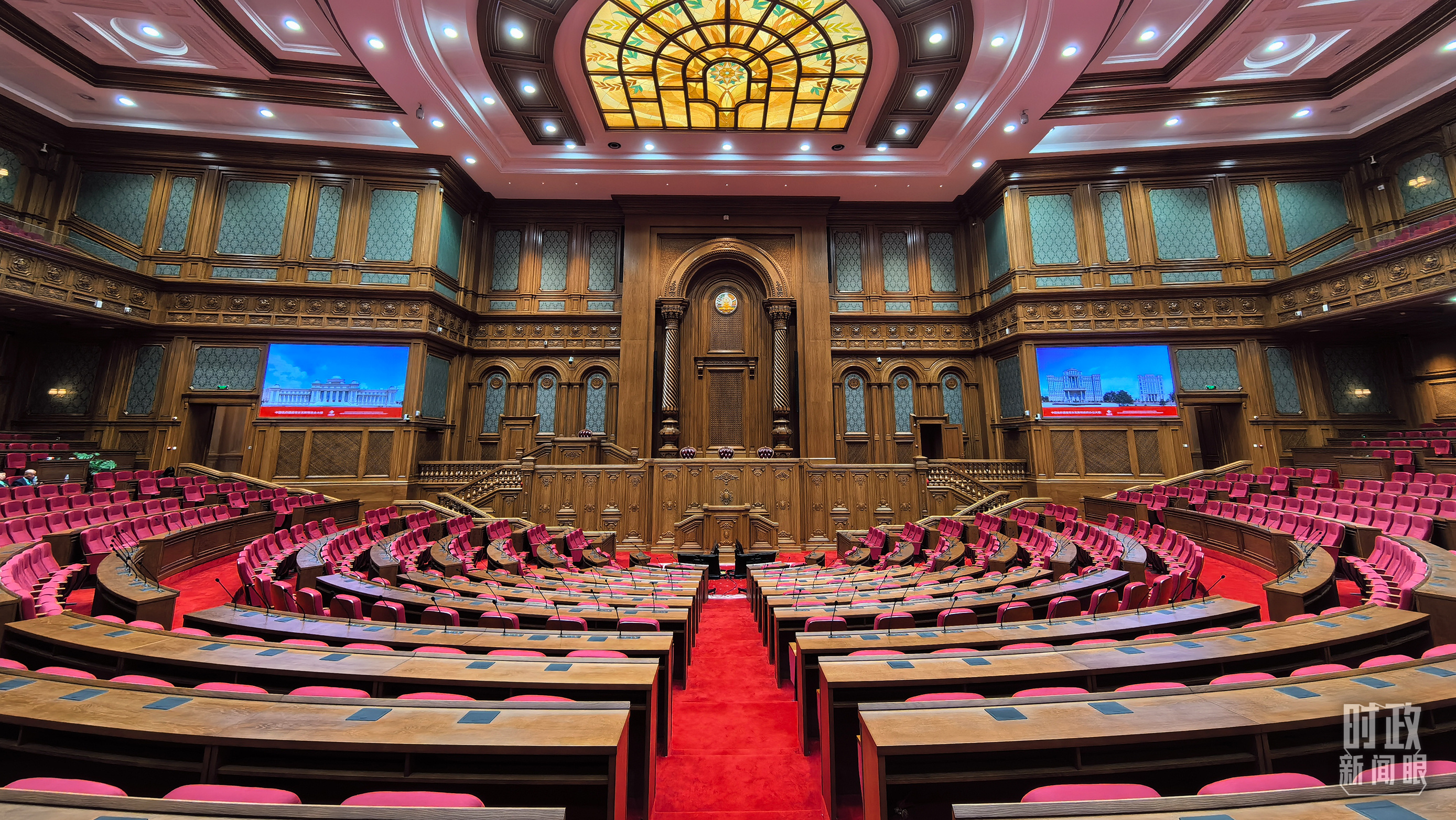 △中方援建塔议会大楼内的联席议会厅。(总台央视记者陆泓宇拍摄)