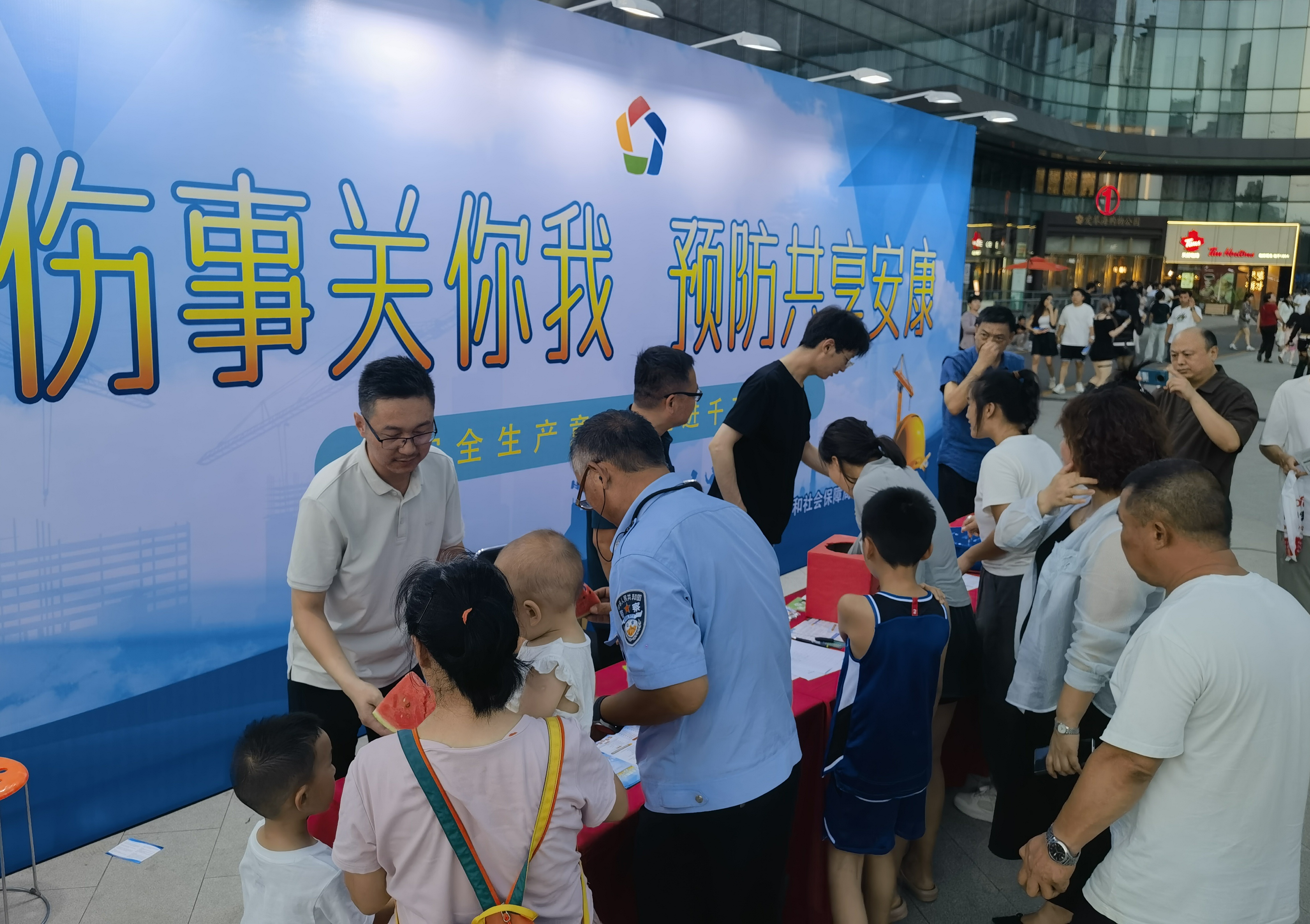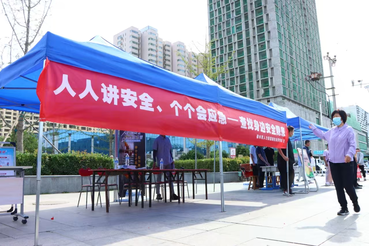 为深化工伤预防宣传,7月6日,衡水市人社局来到衡水爱琴海购物公园,开展以“加强工伤预防 守护生命安全”为主题的交通事故及猝死预防“五进三送”进街道宣传活动。