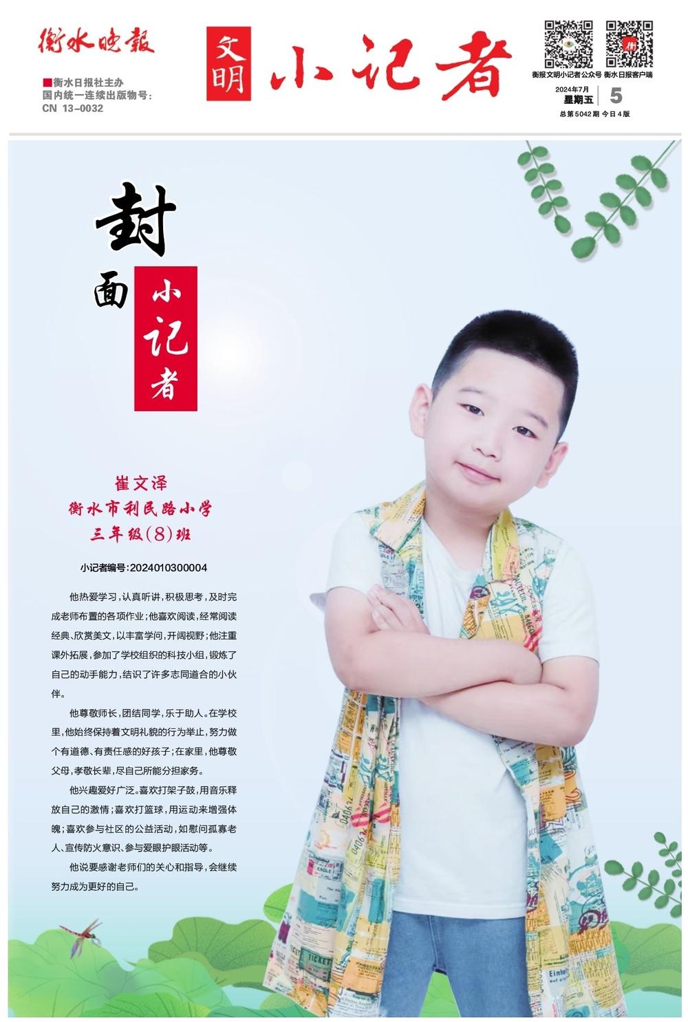 他尊敬师长,团结同学,乐于助人。在学校里,他始终保持着文明礼貌的行为举止,努力做个有道德、有责任感的好孩子;在家里,他尊敬父母,孝敬长辈,尽自己所能分担家务。