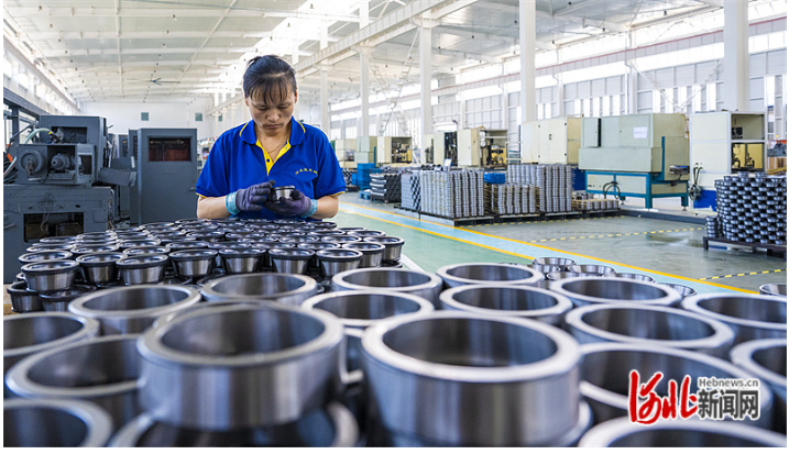 近日,在邢台市临西县千亩百亿高端轴承产业园内,福舸轴承科技(河北)有限公司的工作人员正在检查生产的轴承产品。河北日报记者 李东宇摄