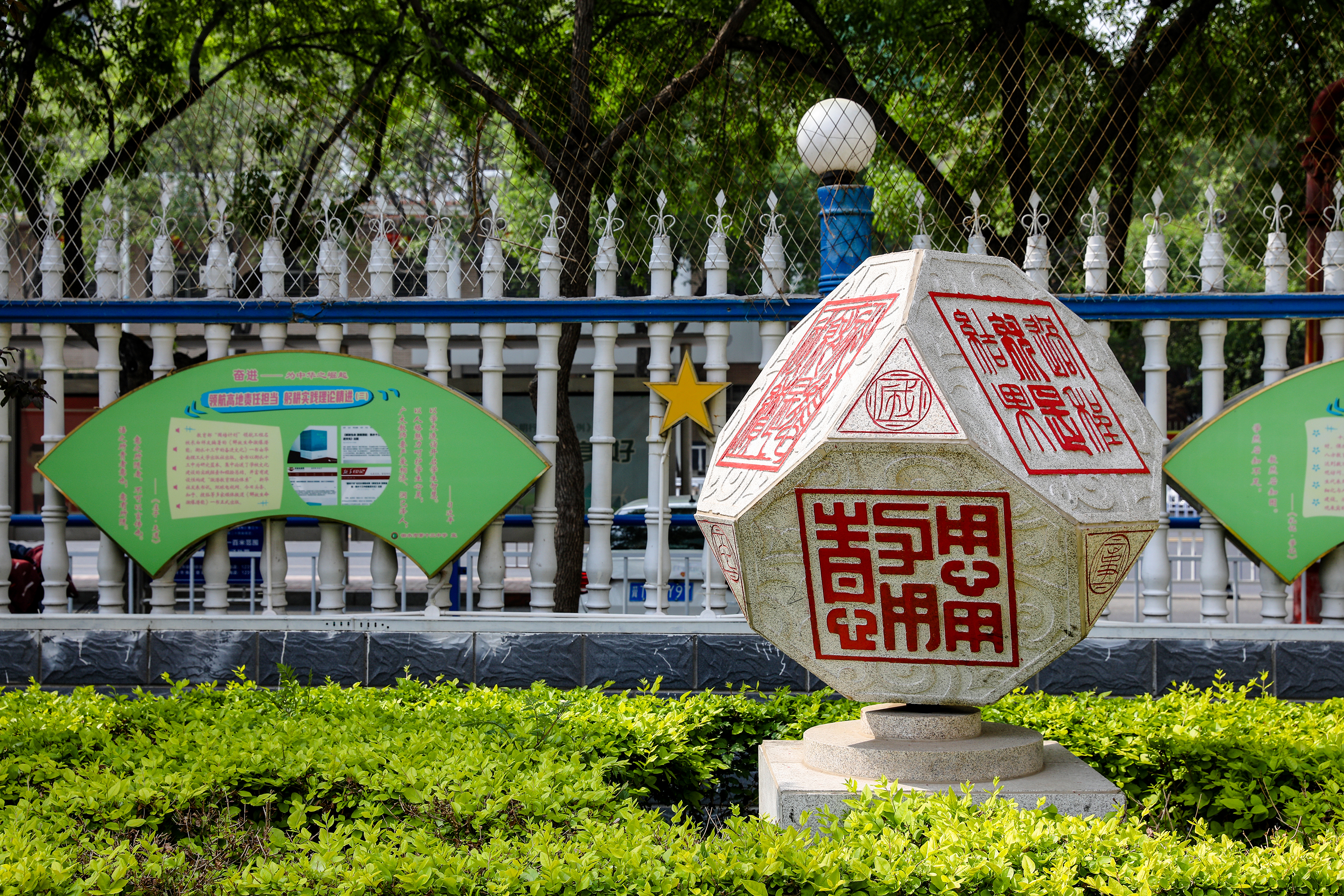 “魔方石”上刻有过程就是结果、状态就是成绩、心胜则一切胜等八句话,一分钟转一圈儿,代表十三中的惜时高效。