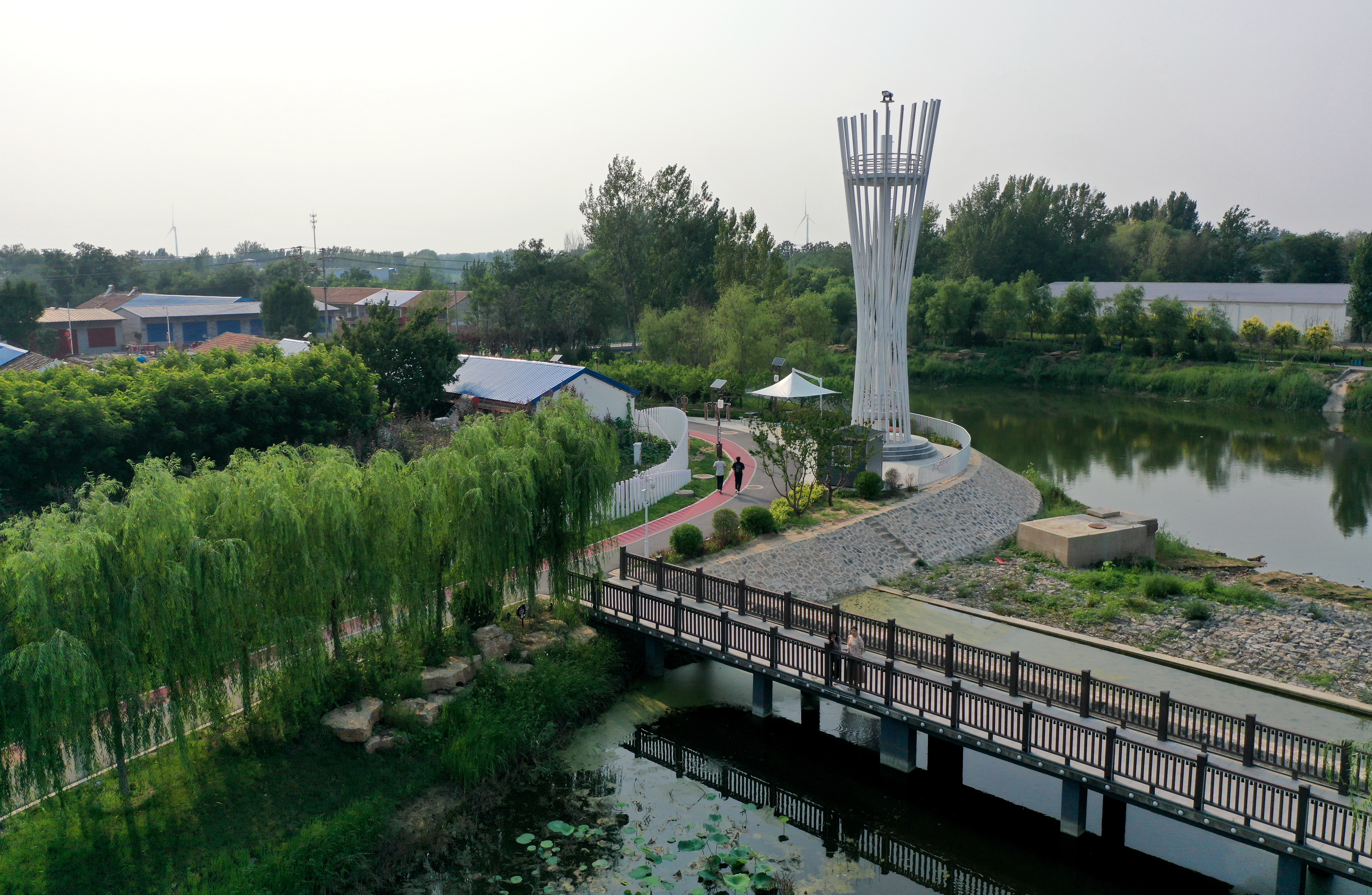 7月3日,黄昏时分,记者沿河而行,从两河沿岸廊道景观小品中,从漫步居民幸福交谈中,去探寻阜城县在城市建设上的智慧与匠心。