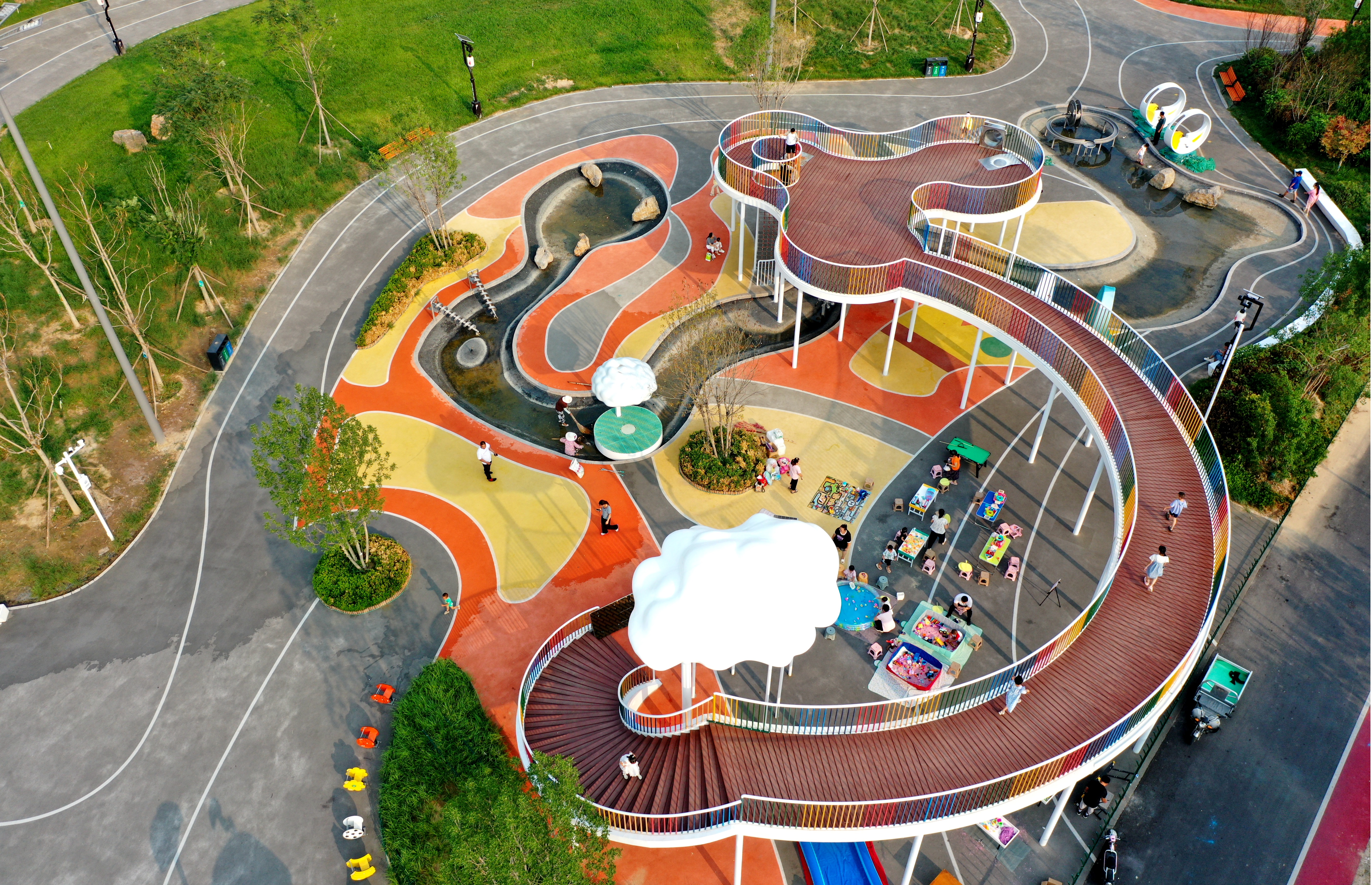 “环城水系生态修复项目不仅在沿岸游乐设施上用心巧妙,为了让城市‘呼吸’更自然通畅,还采用了海绵城市的设计理念。”边鸿超介绍。