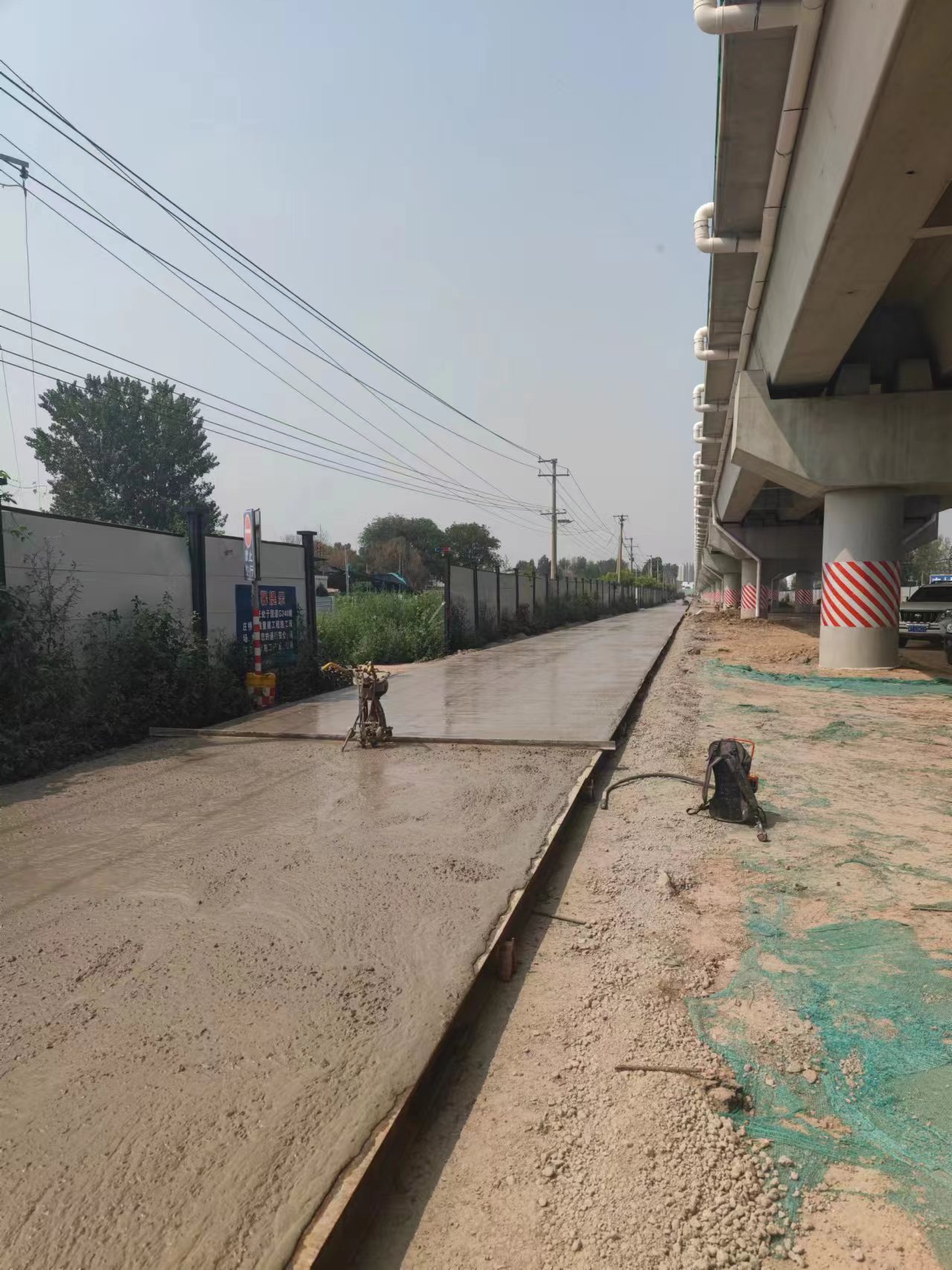 7月10日,国道G240保(定)台(山)公路姚庄桥上车来车往,桥下,两侧辅路铺设施工正酣——基层作业、路面作业同步推进,机器轰鸣声不绝于耳,滚筒压路机等来回穿梭中,笔直的水泥路面徐徐铺开,伸向远方……