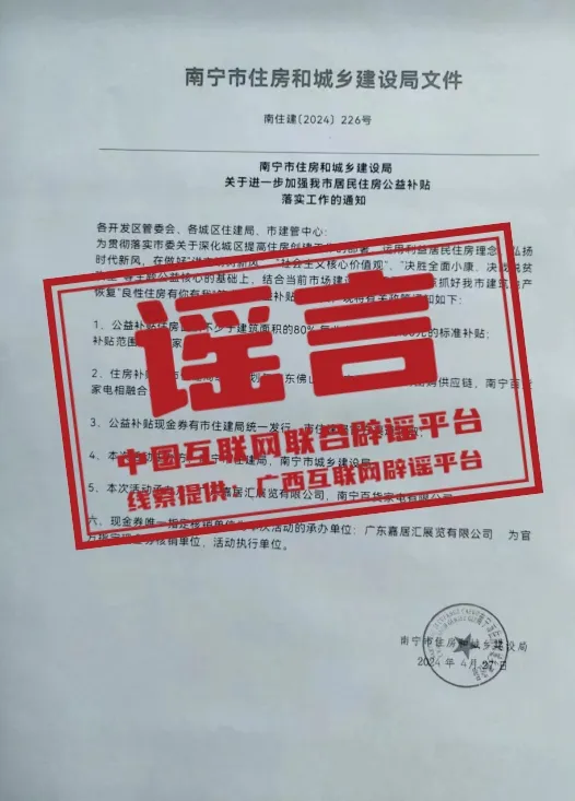 谣言 :广西南宁将发放住房公益补贴?