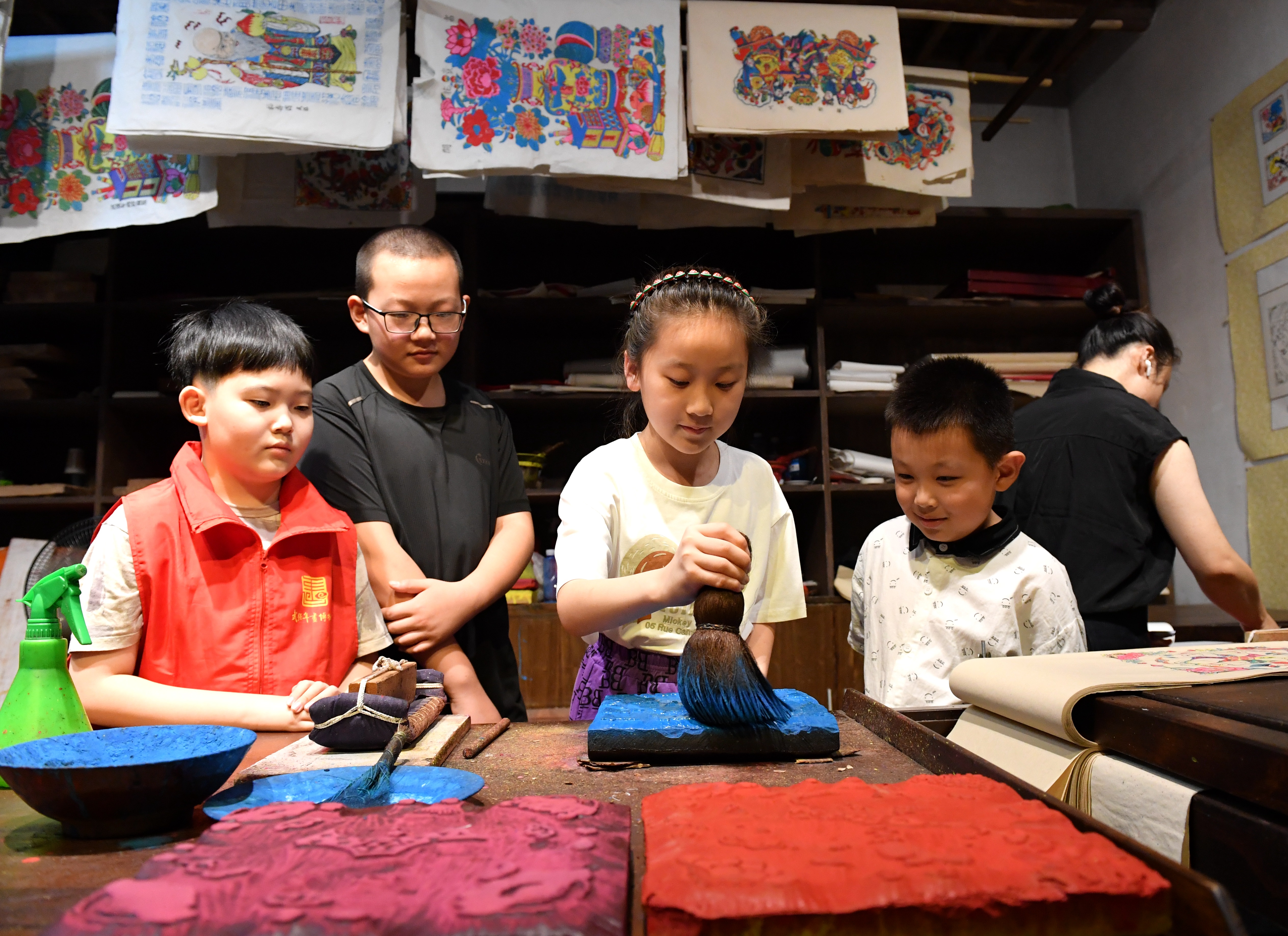“学好声韵辨四声,阴阳上去要分明……”7月11日,走进武强年画博物馆,一群孩子围着老师在认真地练习发声。为让学生感受非遗魅力,度过一个愉快的假期,该馆举办了“小小讲解员”培训班。