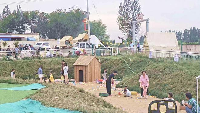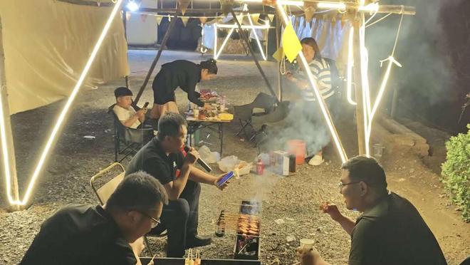 图二为:游客在该村露营基地娱乐放松。