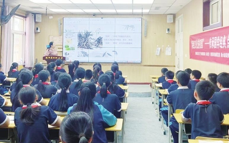 学校还在诗经园内开展经典诵读、汉字书写等常态化活动,以及传统礼仪传授等节庆活动,将诗经中的育人哲理融入校园文化,让师生寻找到“有匪君子,如切如磋,如琢如磨”的君子之风。