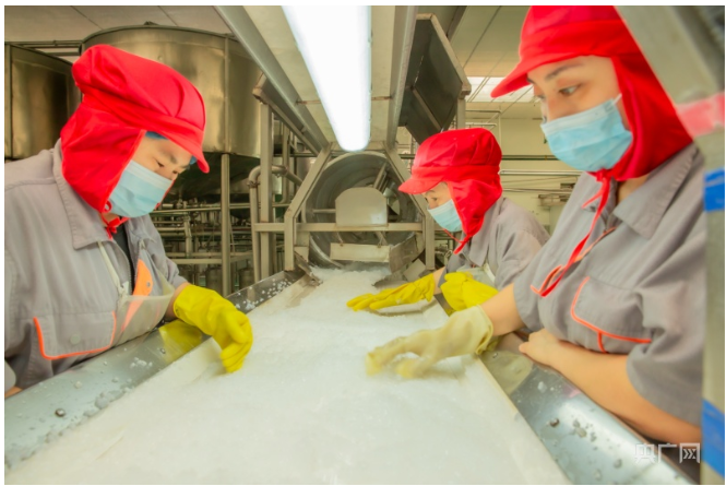 河北玖兴食品有限公司工人在包装线上工作(央广网发 梁洁 摄)