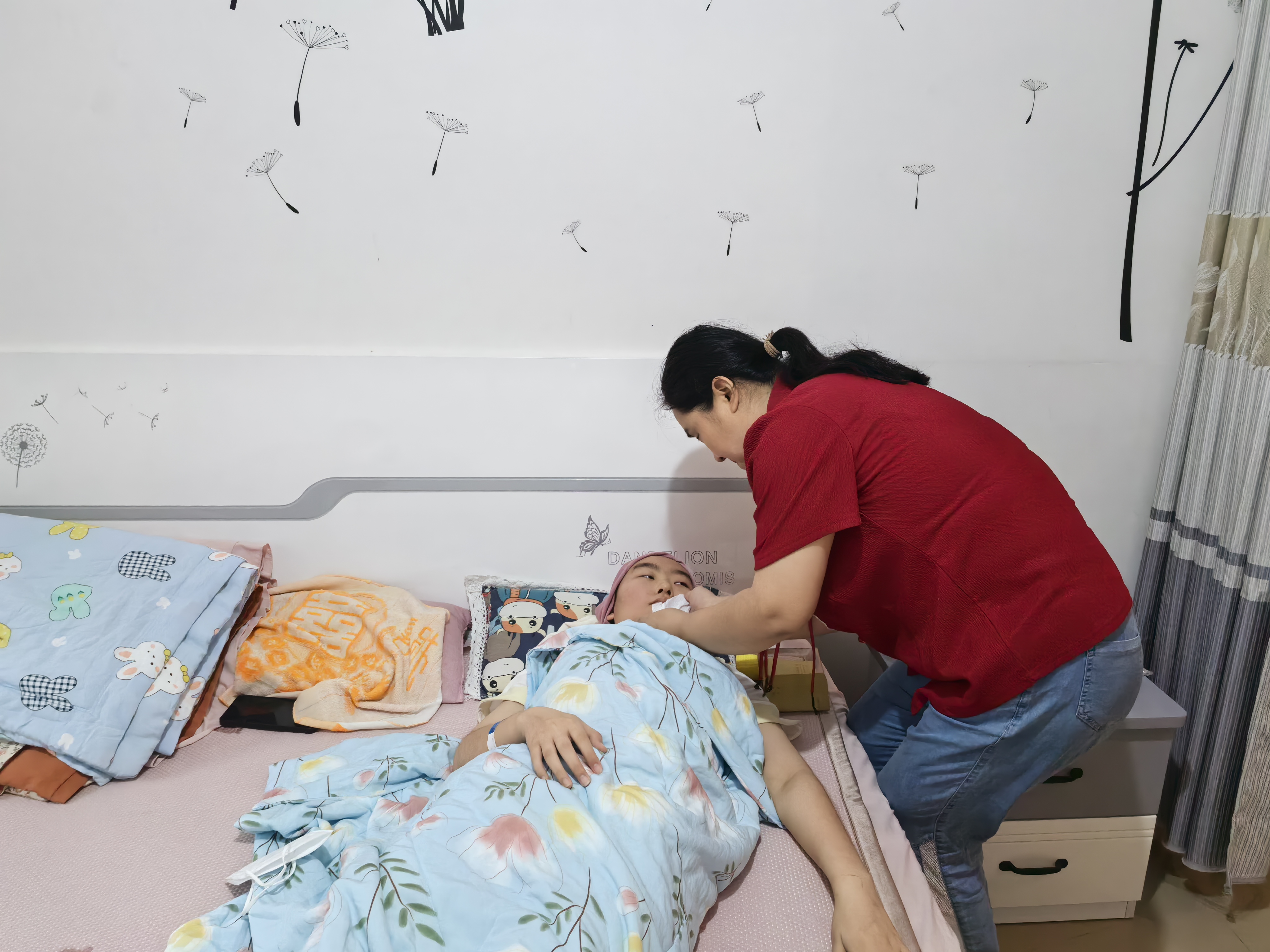 再次见到张奥盈,她的精神状态和身体情况比上次好了很多,可以慢慢下床走动,但还是有无力和憋闷的感觉。