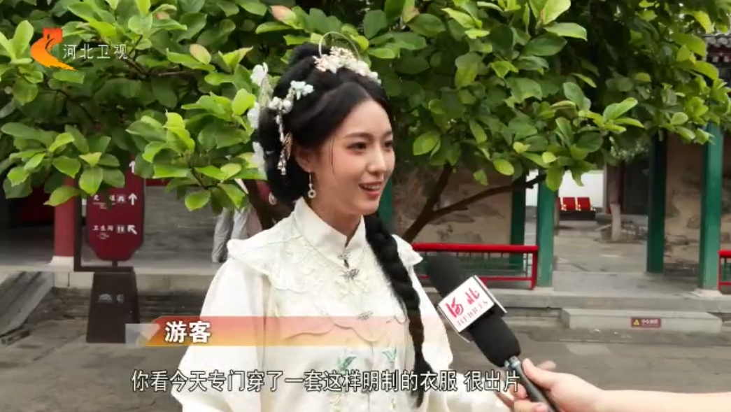 古色古香的建筑对于我们来说,你看今天专门穿了一套这样明制的衣服,很出片,所以说我们还是蛮喜欢这边的。
