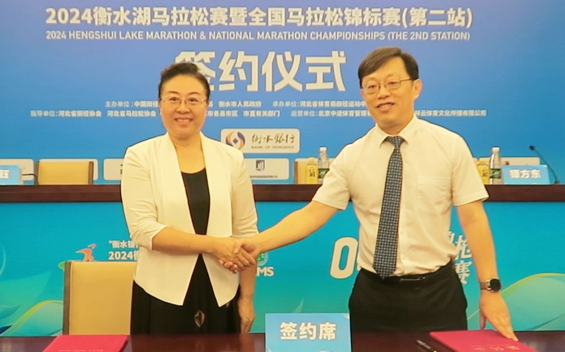 7月17日上午,“衡水银行杯”2024衡水湖马拉松赛暨全国马拉松锦标赛(第二站)签约仪式在市迎宾馆举行。衡水银行与“衡马”组委会签订总冠名协议。