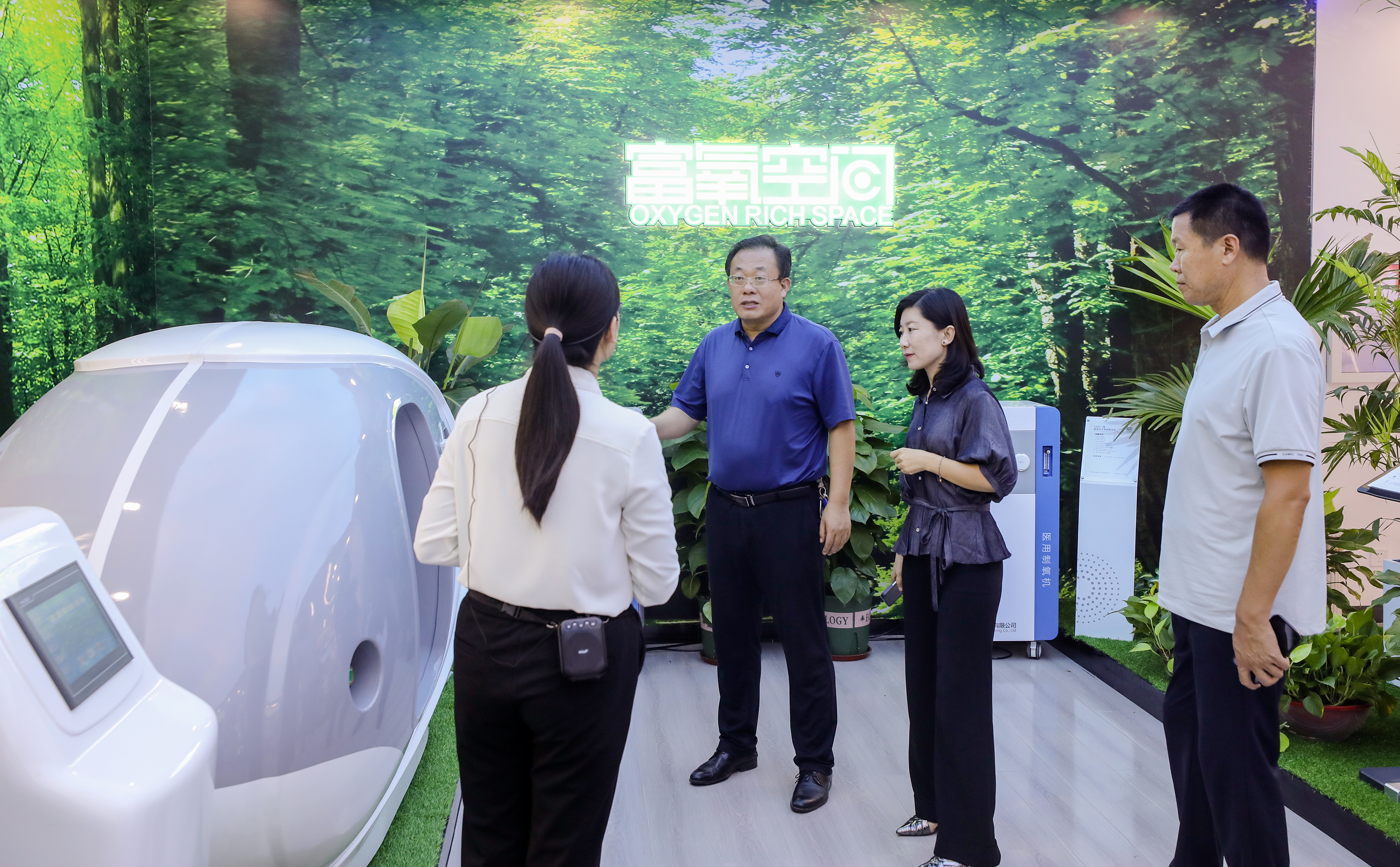 当高科技与医疗器械、康复辅具相遇,会擦出怎样的“火花”?产业发展中心内,既有护理床、轮椅等传统产品,还有智能定位拐杖、微压大气舱、适老化改造监护可视化系统等高端智能产品。采风团一行不时被眼前充满“智慧”的展品吸引,大家边听边看,感受高科技带给医疗健康的魅力。