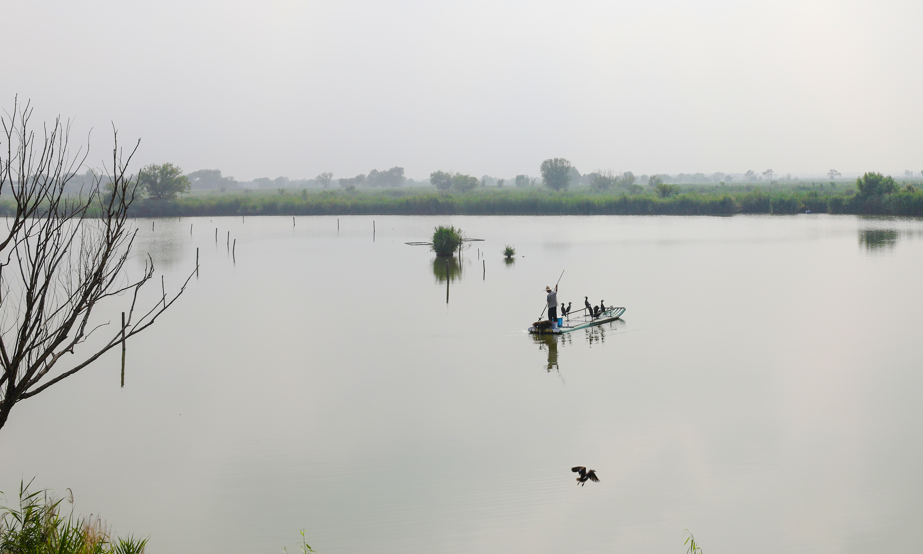 冀州古城遗址附近湿地,再现鸬鹚捕鱼场景。陈康摄