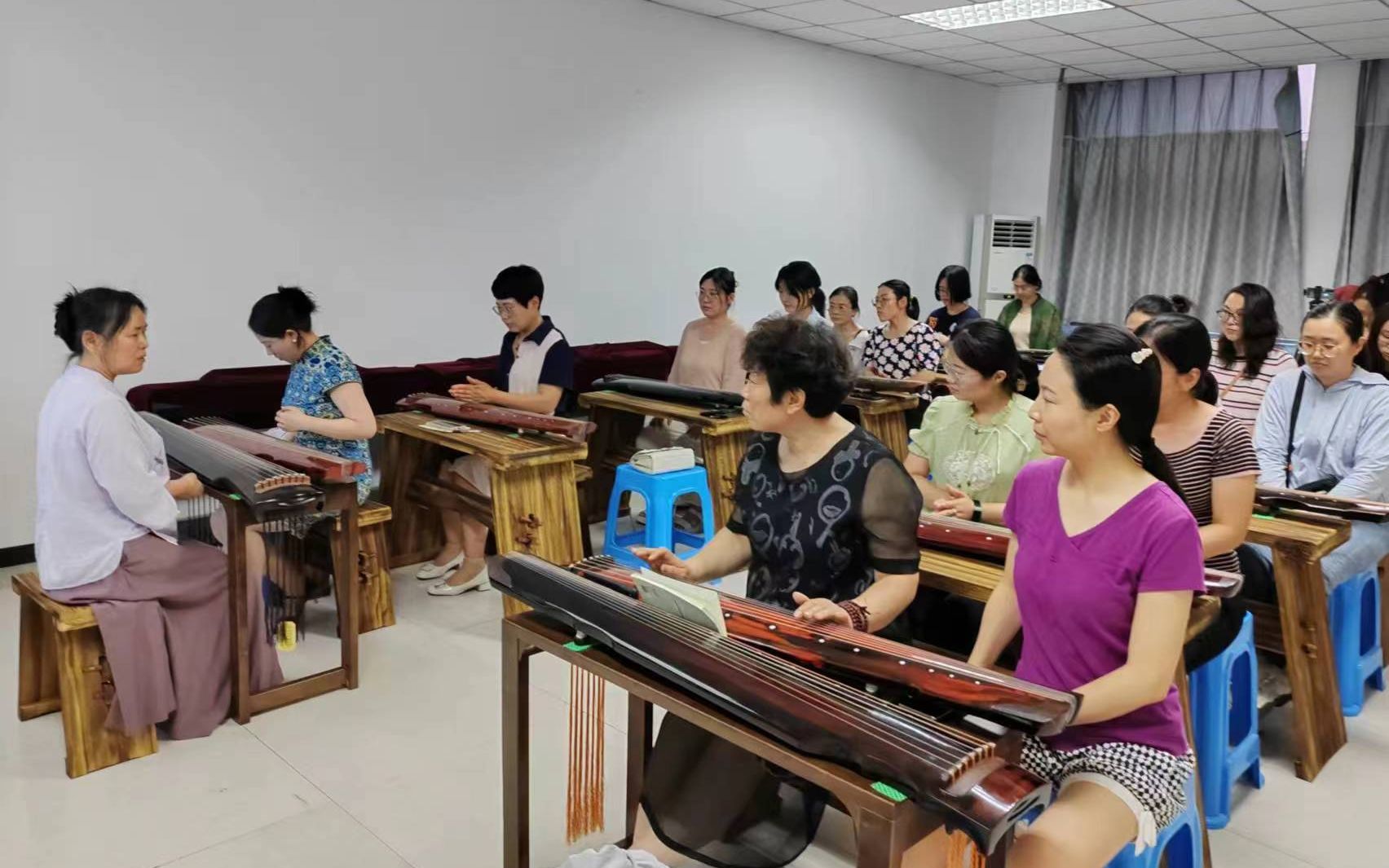 桃城区文化馆“青年文化夜校”古琴班老师正在讲解古琴弹奏技巧。