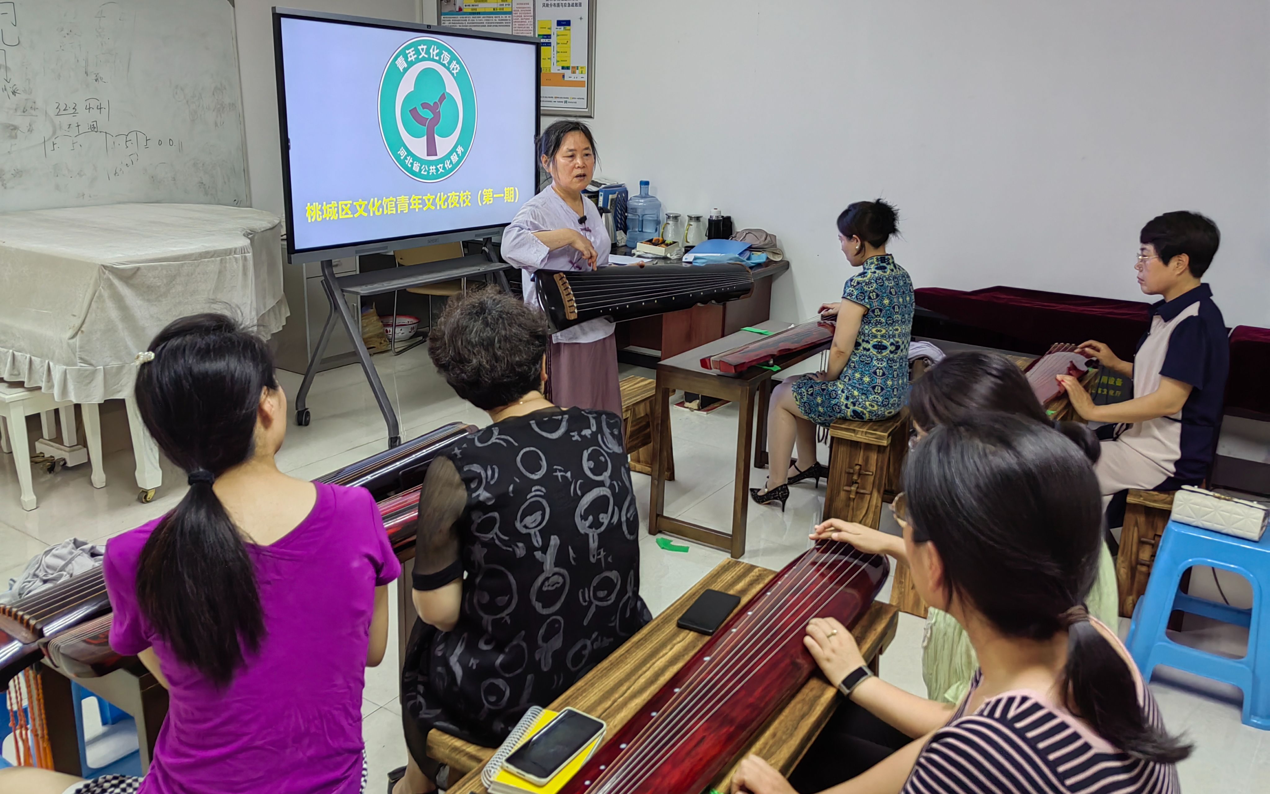 7月17日晚7时,正值晚高峰时段,桃城区文化馆也迎来“晚高峰”。当晚,桃城区文化馆开办的首期“青年文化夜校”正式开班。古琴学习班上座无虚席,20余名青年学员端坐在古琴桌前,专业古琴老师正在为大家细心讲解古琴的起源、基本演奏姿势和手指的合理运用方法。“我对古琴比较感兴趣,整节课体验下来感觉很有趣,”学员陈娜高兴地说,以前下班后,就是出门遛遛弯儿,或者在家里看看电视、刷刷手机,时间就这样流逝了,听说了“青年文化夜校”后,她立刻报了名。“学一门才艺,既可以让休闲时光变得有意义起来,也能陶冶情操。”陈娜的话道出了许多报名参加“青年文化夜校”的学员们的心声。桃城区文化馆馆长康燕介绍,“自发布‘青年文化夜校’的开班信息后,就有不少青年踊跃报名,效果非常好,也希望通过开设‘青年文化夜校’公益课堂,能够为全区广大青年提供一个学习和提升自我的机会。”
