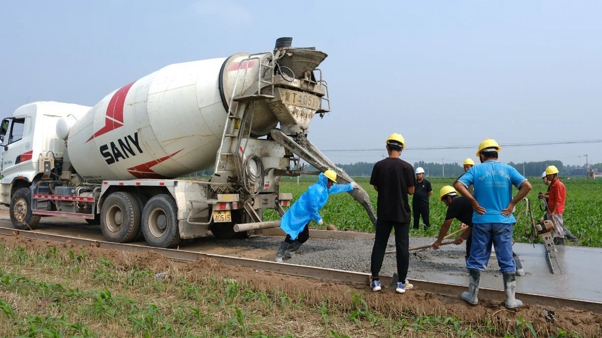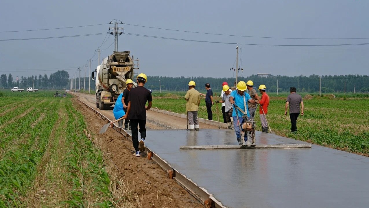 摊铺水泥。武强县财政局供图