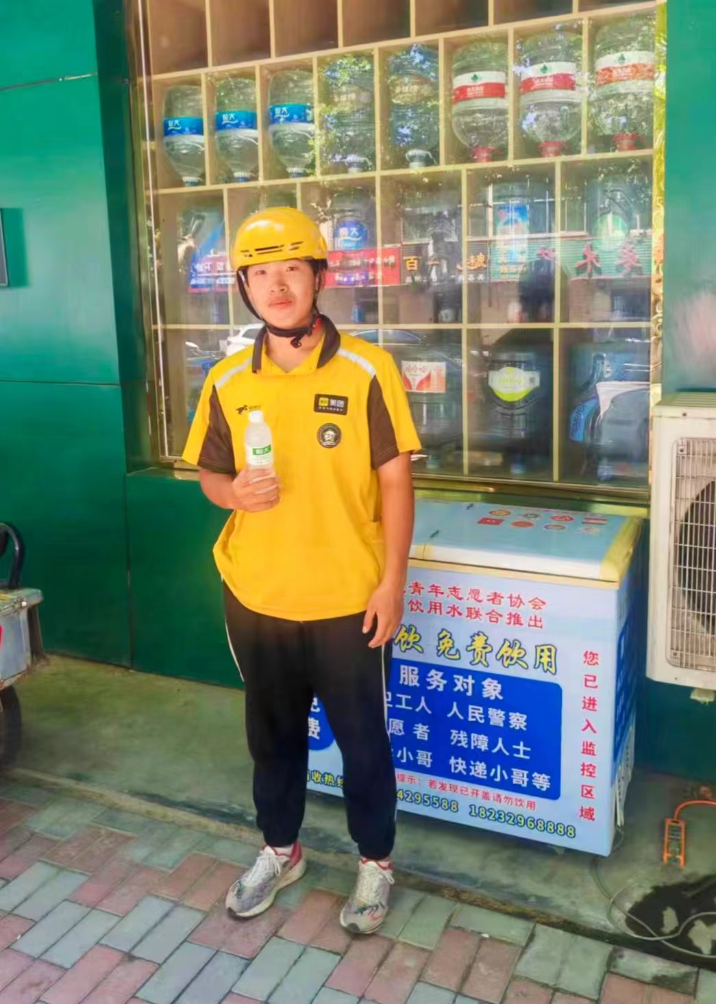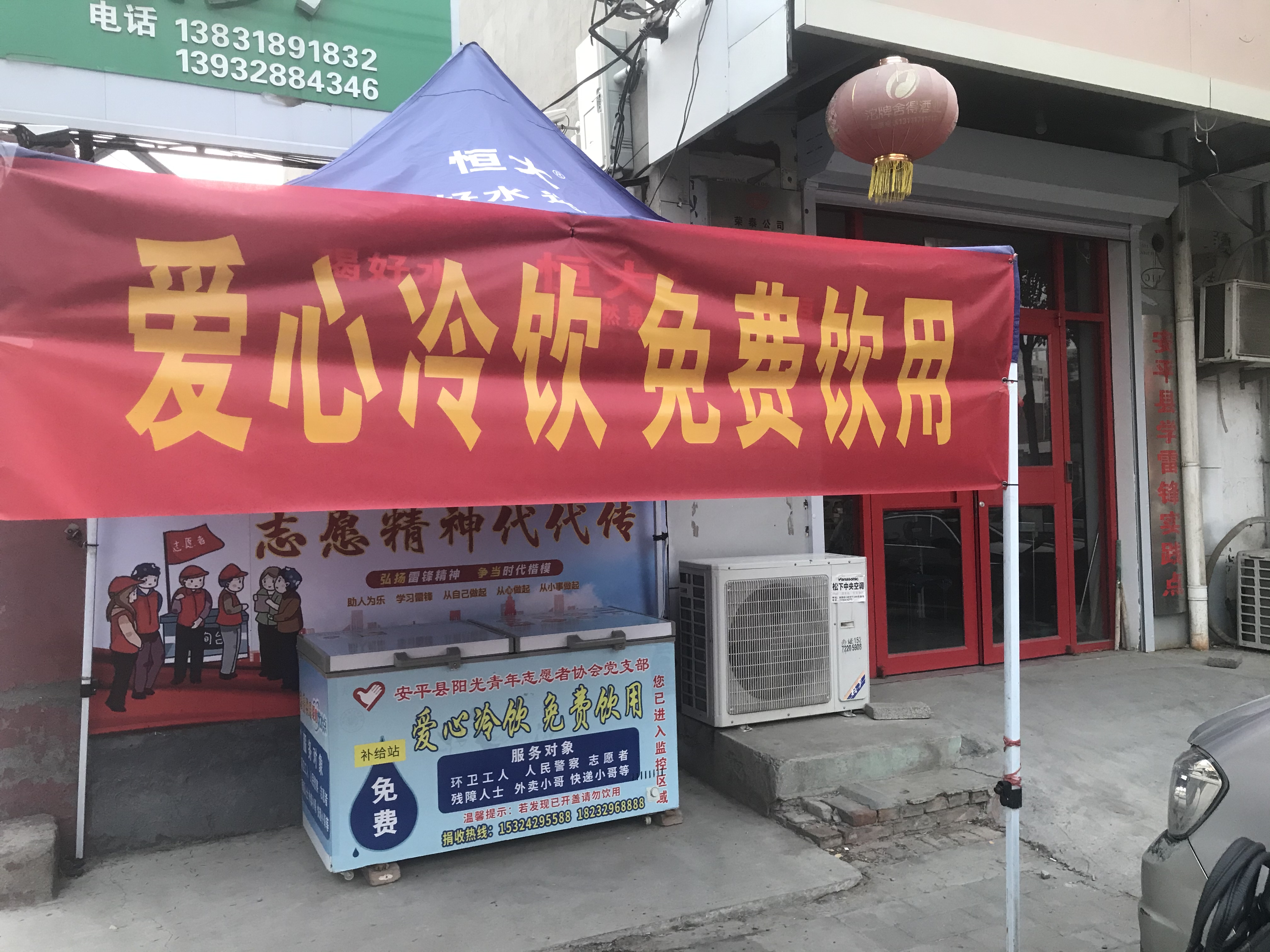 安平县阳光青年志愿者协会会长张雷介绍:“入夏以来,每每看到环卫工人、交警、外卖小哥等户外工作者在烈日下挥汗如雨的身影,都让人心疼不已。于是,我便和协会里的志愿者们商量,决定在县城人流量大的街头设立‘爱心冰柜’,让他们能够免费领取清凉的矿泉水。”