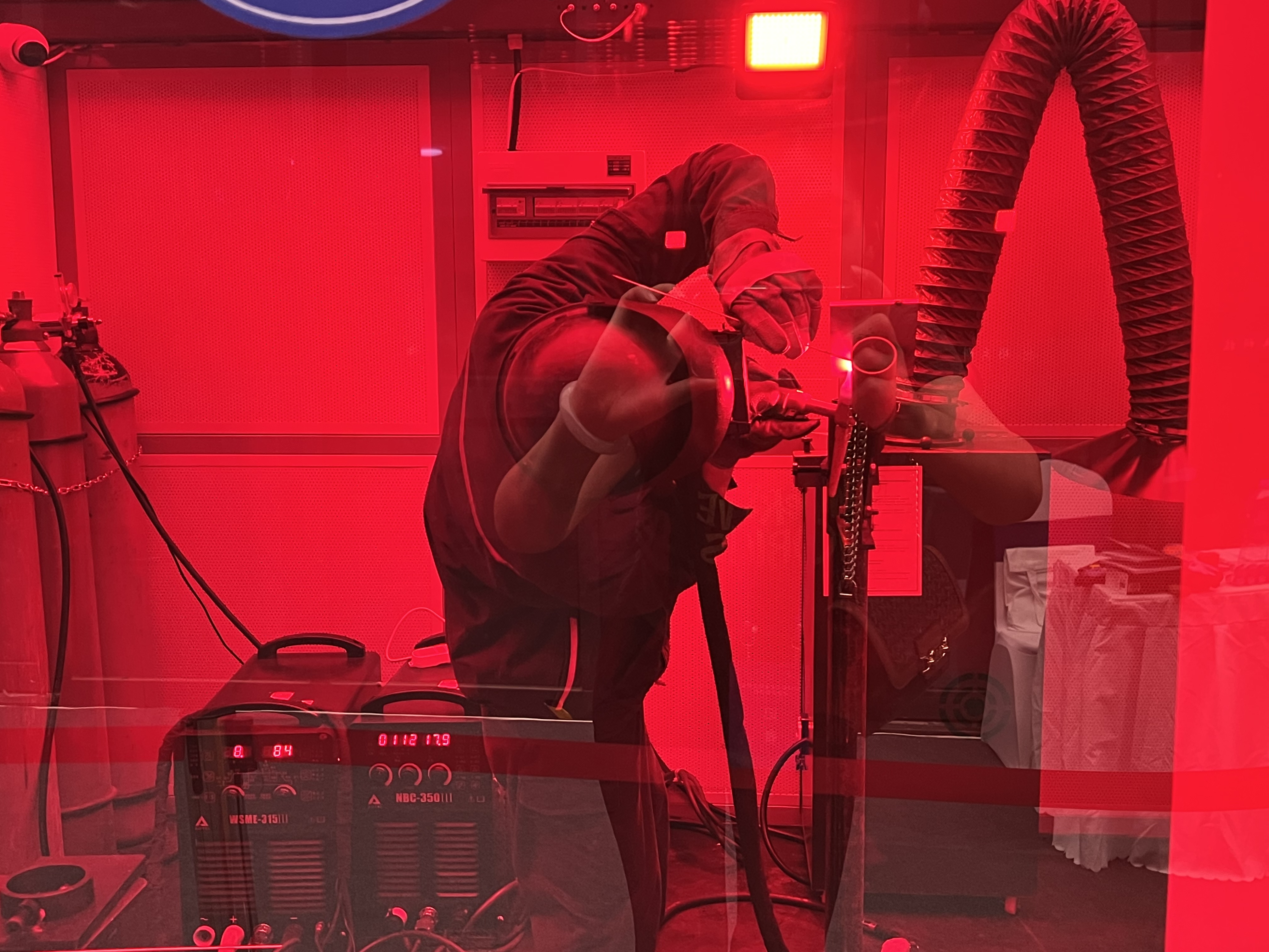 来自石家庄的选手张涛从事焊工已经十几年了,比赛现场,他头戴防护工作帽,身穿工作服,手持焊枪认真操作,操作间里红光闪烁,滋滋作响。在同组选手中他率先完成了全部实操内容。“我干活最先保证质量,然后提升速度,刚刚的实操感觉很顺手,希望可以取得好成绩。”张涛说,能作为石家庄代表来参加全省的大赛觉得非常荣幸,感谢大赛给他提供了一个交流学习的平台。