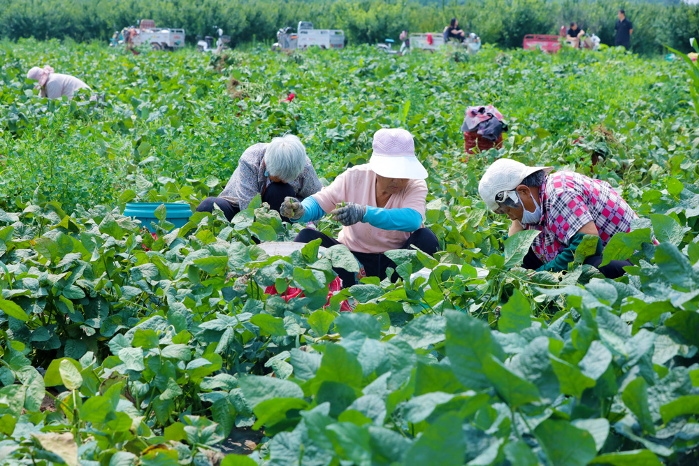 村民在采摘毛豆,准备发往北京新发地市场。刘晓飞 摄