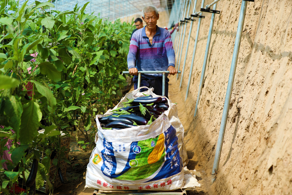 新采摘的茄子准备发往北京新发地市场。刘晓飞 摄