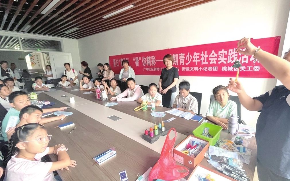 本报讯(记者贾冽 王鑫浩)7月14日上午,由广场社区新时代文明实践站、衡报文明小记者团、桃城区关工委联合举办的暑期青少年社会实践系列活动启动。当天30多名小记者和家长一起动手,用针线把废布条变成了漂亮的香囊。