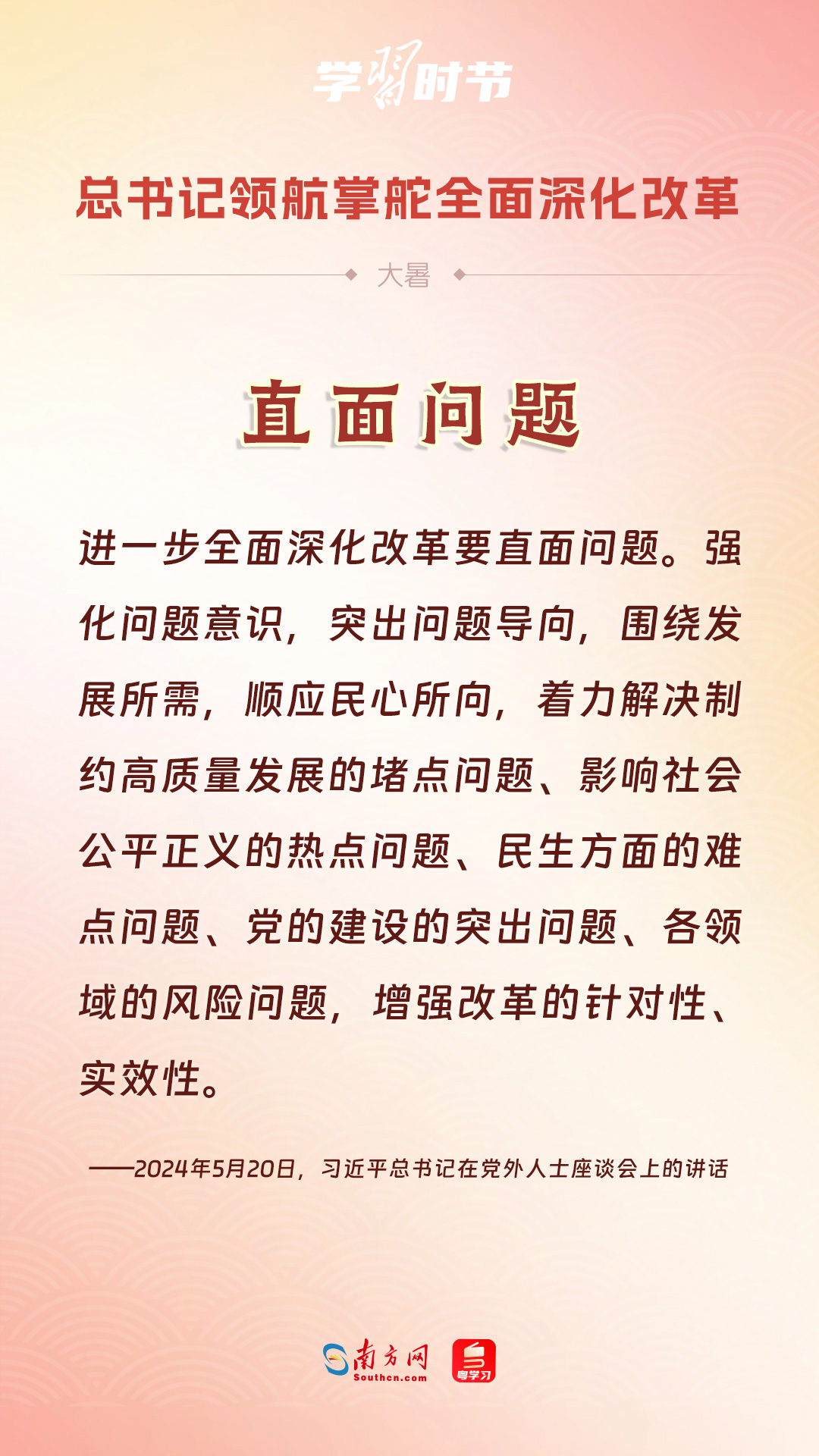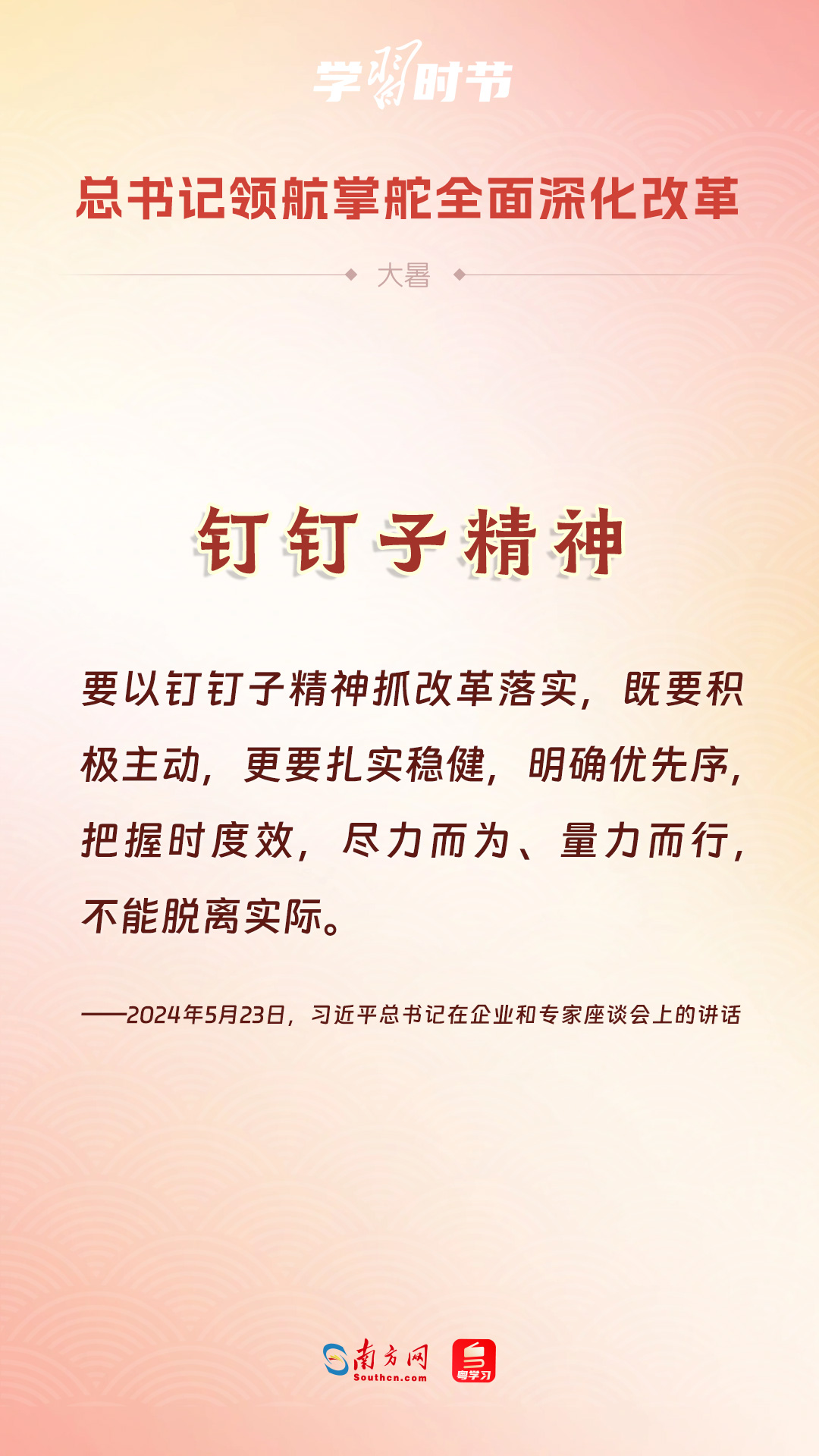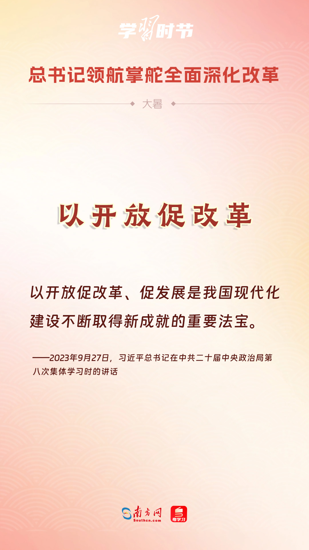 党的十八大以来,习近平总书记亲自领导、亲自部署、亲自推动全面深化改革工作,推动全面深化改革事业在攻坚克难中不断迈上新台阶、取得新胜利。在骄阳似火的大暑时节,通过一组海报,让我们共同学习习近平总书记关于“全面深化改革”的重要论述。