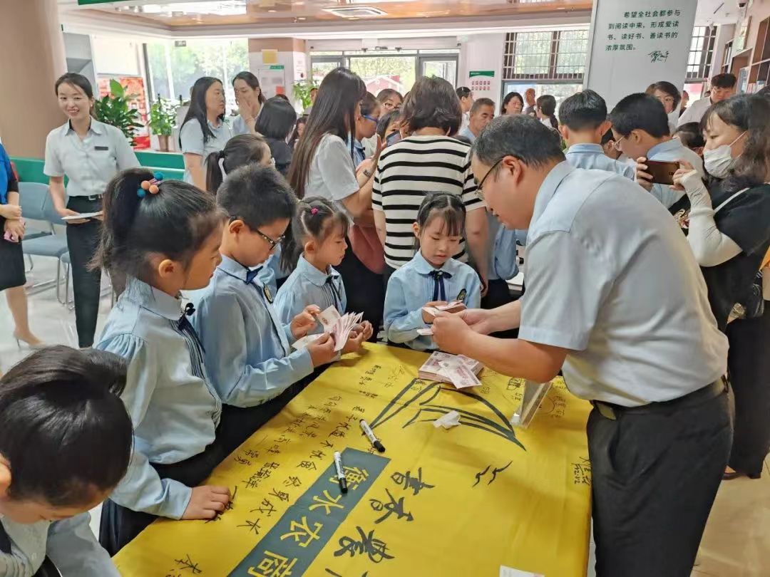 7月18日上午,由衡水市图书馆和衡水农商银行联手打造的“衡水市图书馆·农商银行城市书房”揭牌仪式在衡水农商银行城中支行举行。衡水市文广旅局相关负责人,衡水农商银行党委书记、董事长冯占中,市图书馆主要负责人,蓝海少儿合唱团的成员以及部分市民读者等70余人参加。