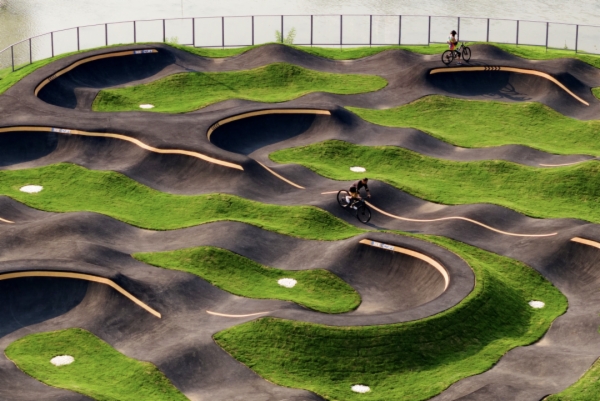 在如是海度假村,占地2000平方米的泵道公园正式开放了,在“绿波”起伏的泵道中,很多萌娃骑着平衡车练习骑行。在泵道上骑行,不需要蹬踏单车踏板,只需要通过正确的加速技巧,就能够获得源源不断的前进动力。“旅游+运动”让游客来到秦皇岛又多了一个理由。
