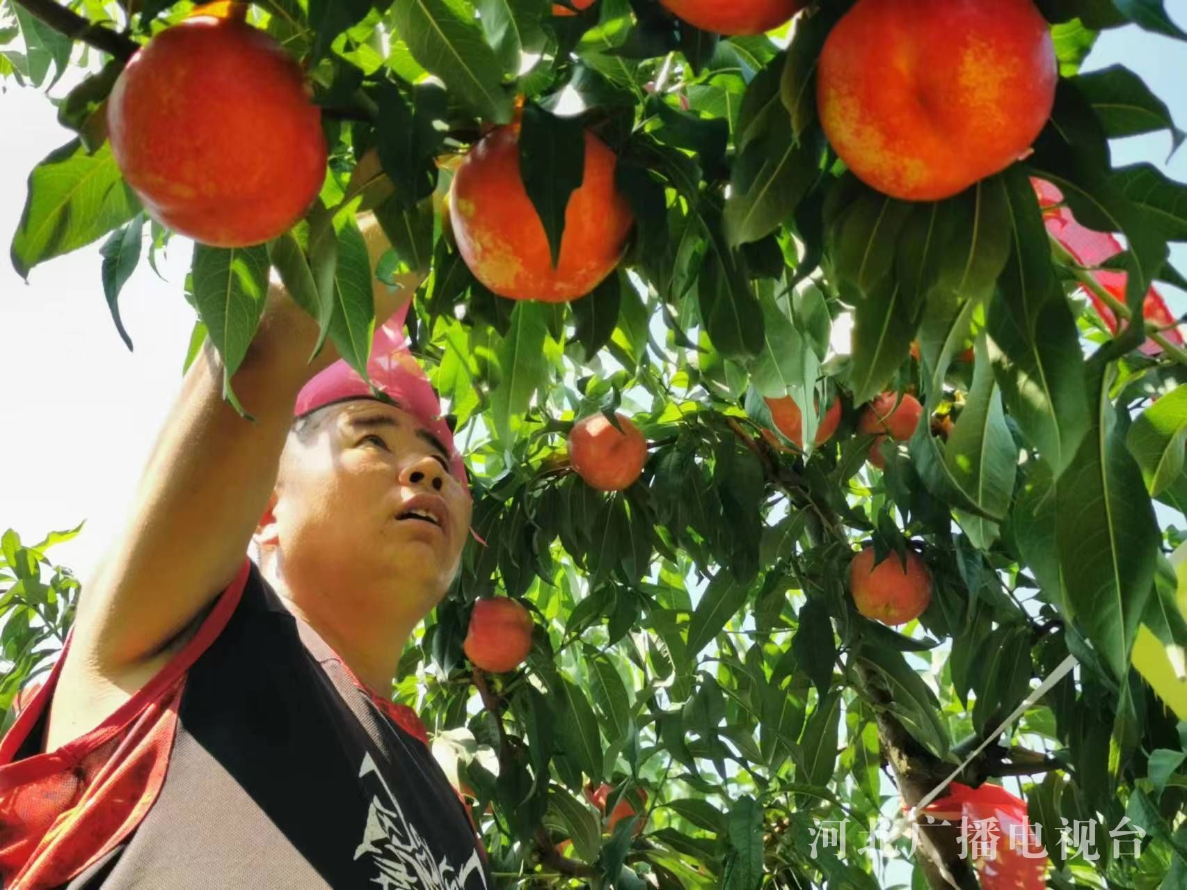 日前,走进深州市穆村镇马庄村村民李志想的桃园,红彤彤的桃子挂满枝头,桃香四溢,络绎不绝的游客和客商穿梭桃园采摘,粉嫩的桃子让人垂涎欲滴。