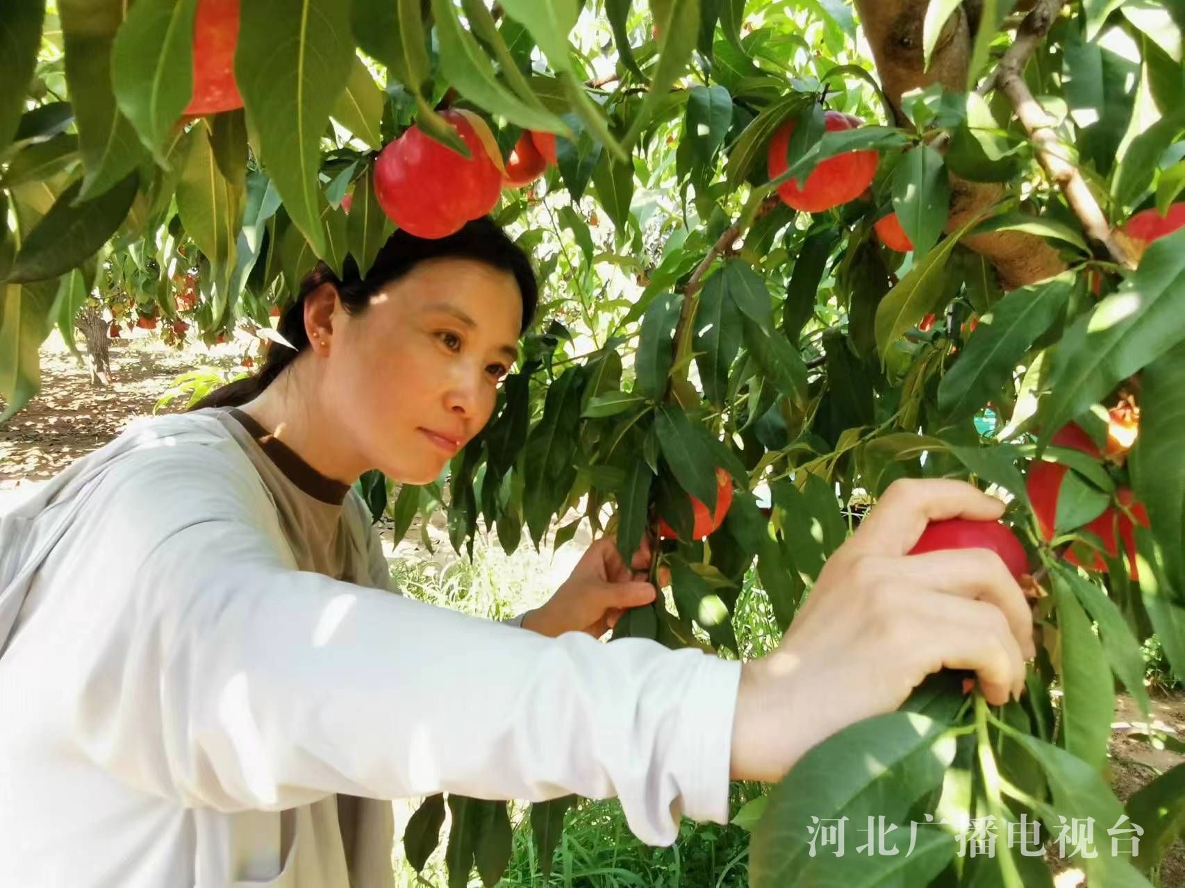 桃农李志想在采摘鲜桃