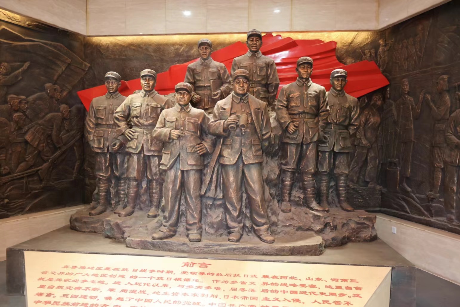 步入展览馆,映入眼帘的是一座曾在冀鲁豫边区战斗过、生活过的革命前辈雕像。“1938年4月,在抗日战争的烽火硝烟中,冀鲁豫边区省委党校在危难时刻光荣诞生……”展览馆馆长张隆动情地讲解着,抗日战争时期,冀鲁豫边区在政治和军事上具有重要的战略地位,而北内漳村则是冀南区的抗日中心村和堡垒村。