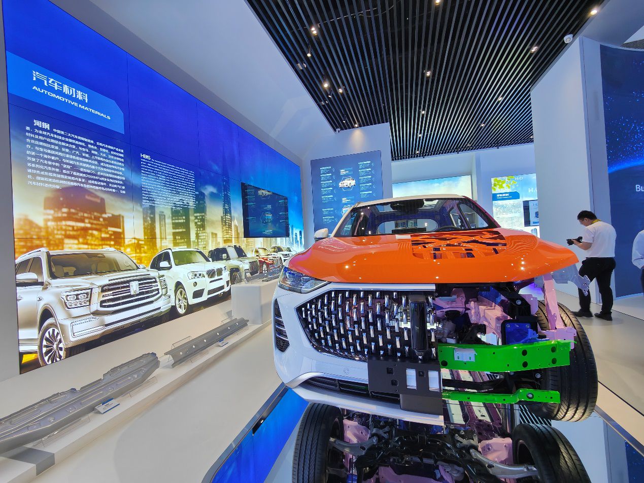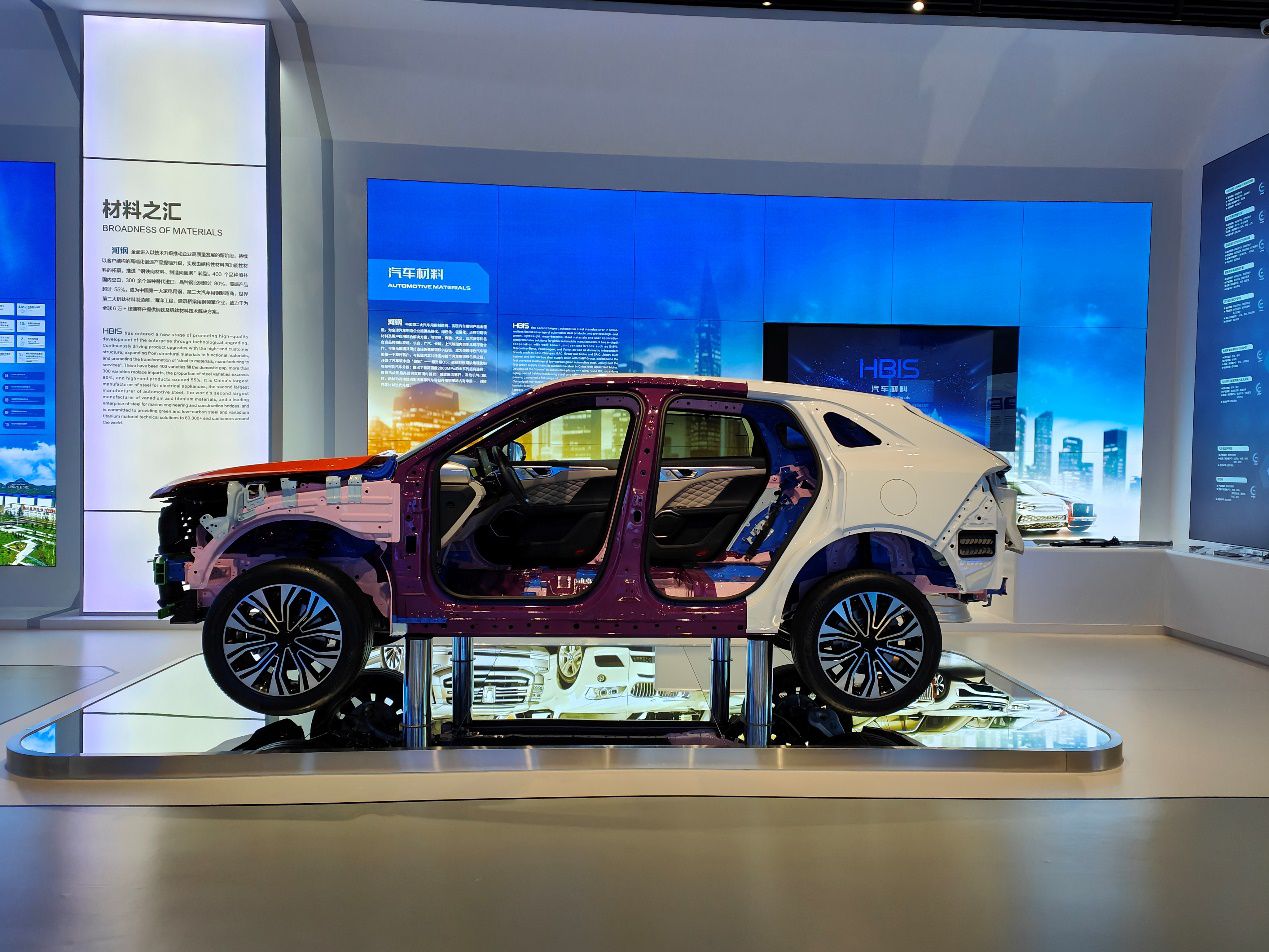 河钢是我国第二大汽车用钢制造商,实现汽车用钢产品全覆盖,为全球汽车制造企业提供高端化、绿色化、轻量化、近终型钢铁材料及用户应用综合解决方案。在河钢材料技术展馆,一辆五颜六色的汽车模型格外吸引人注意。
