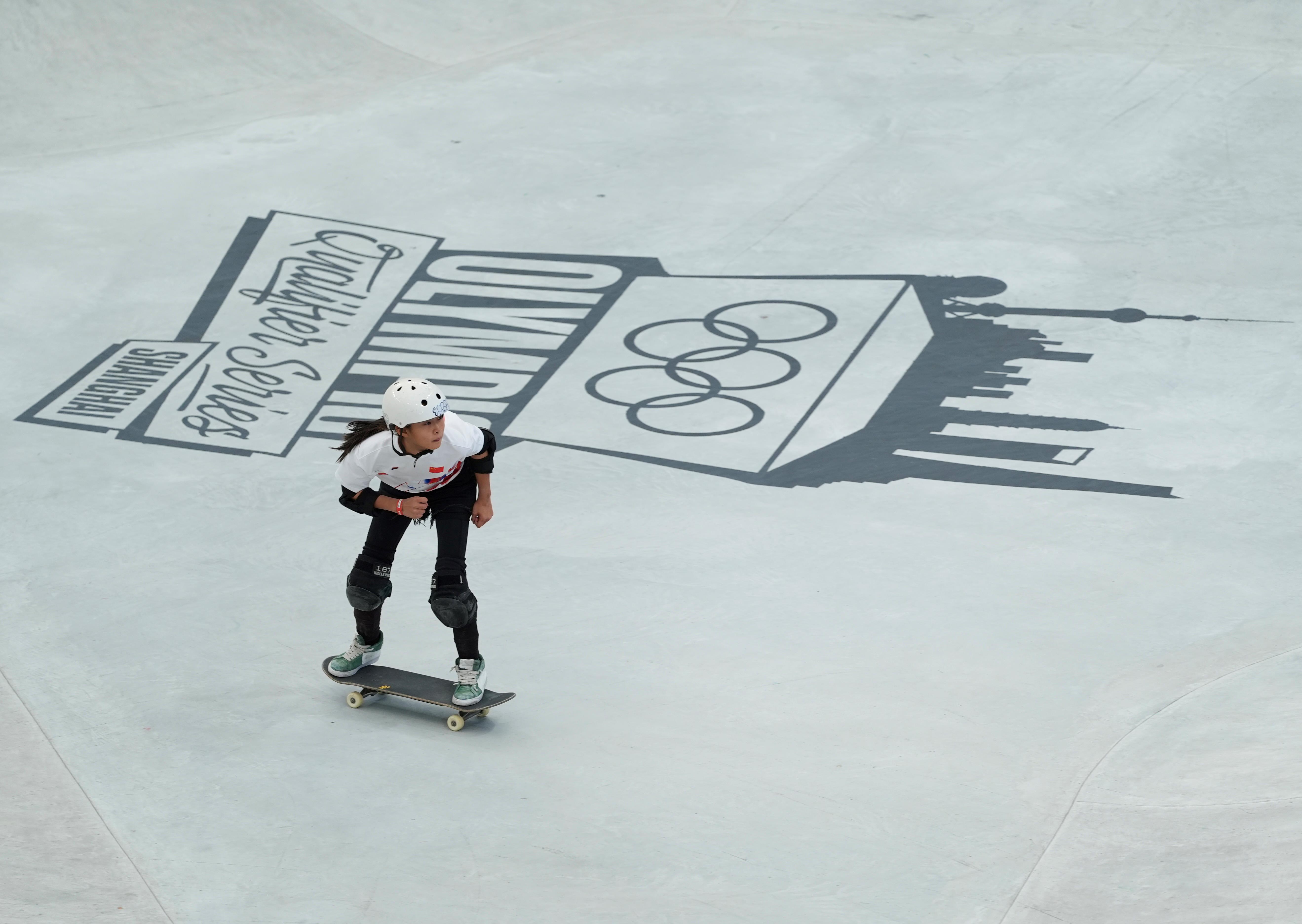 △2024年5月16日,中国选手郑好好出战2024巴黎奥运会滑板女子碗池资格赛。
