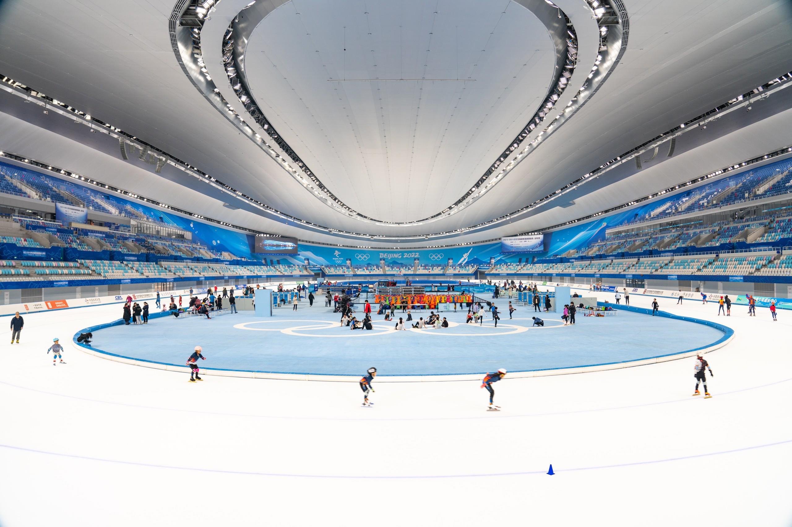 △2024年4月27日,滑冰爱好者和市民在北京国家速滑馆参加滑冰运动。