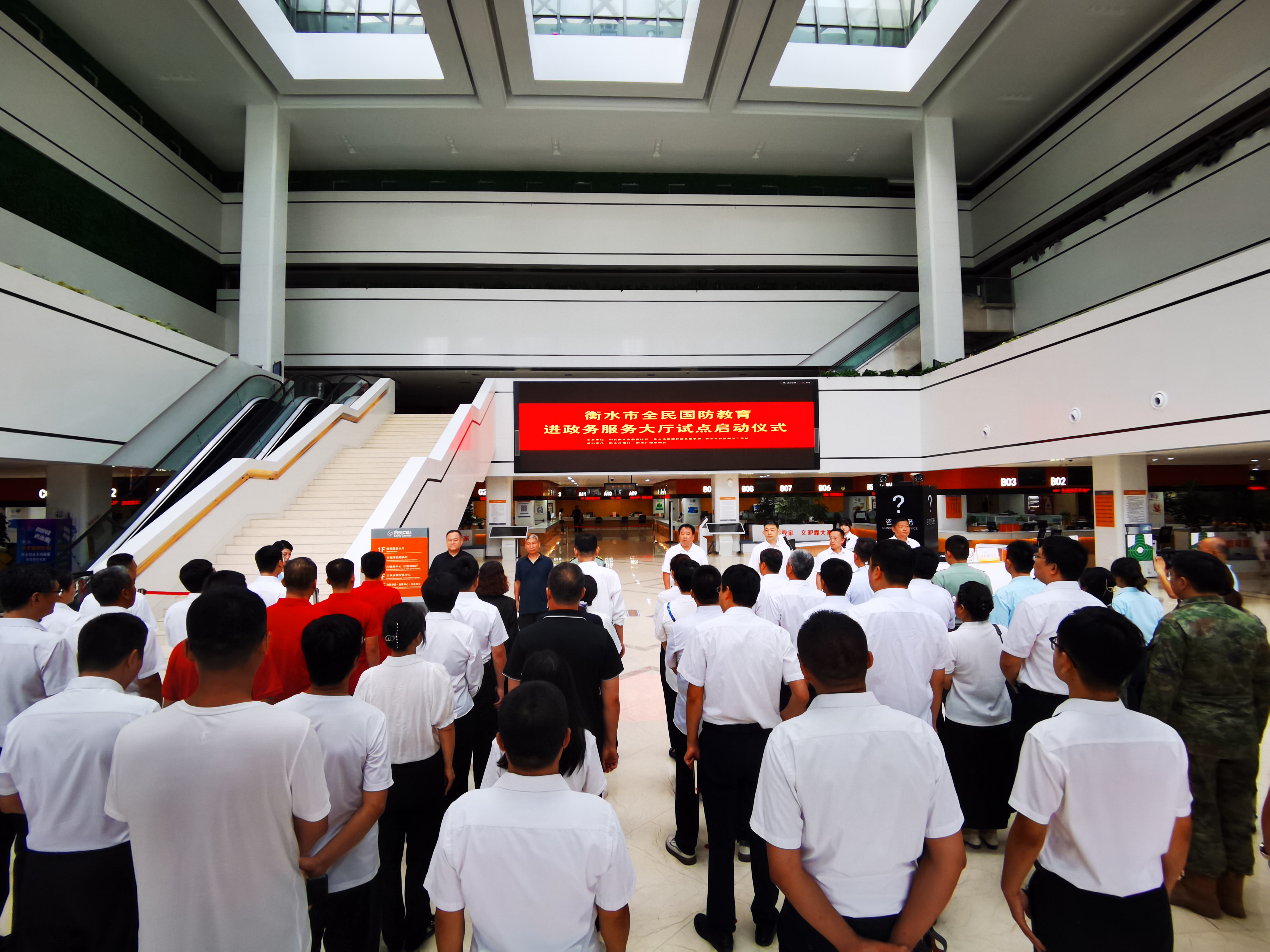 在中国人民解放军建军97周年即将到来之际,7月27日上午,衡水市全民国防教育进政务服务大厅试点工作启动仪式在市民中心举行。各县(市、区)委宣传部主管副部长、国教办主任,各县(市、区)数据和政务服务局主管副局长,衡水日报社、衡水广播电视台、衡水军分区政治工作处、衡水市爱国拥军联合会、河北励兵科技有限责任公司有关负责同志参加。