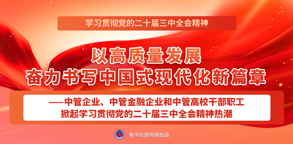 点击标题看详情:以高质量发展奋力书写中国式现代化新篇章——中管企业、中管金融企业和中管高校干部职工掀起学习贯彻党的二十届三中全会精神热潮