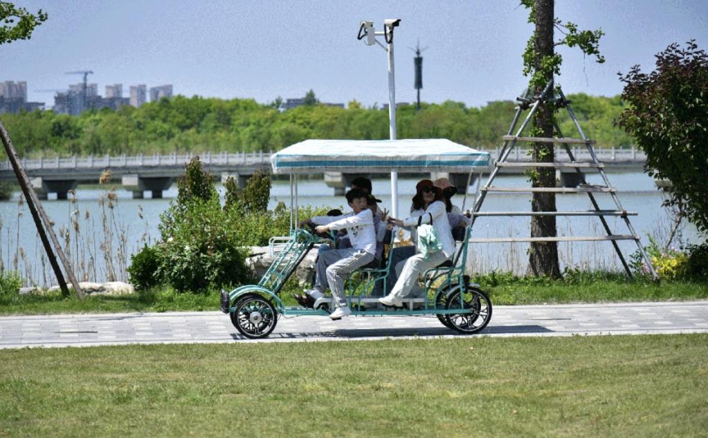 “我以前是大货车驾驶员,全国各地跑运输。听说家乡建了潘安湖景区,我就来景区做了一名观光车驾驶员。”江苏省徐州市贾汪区居民吴继伟说,“现在的生活用我们当地话来讲就是——真好。”