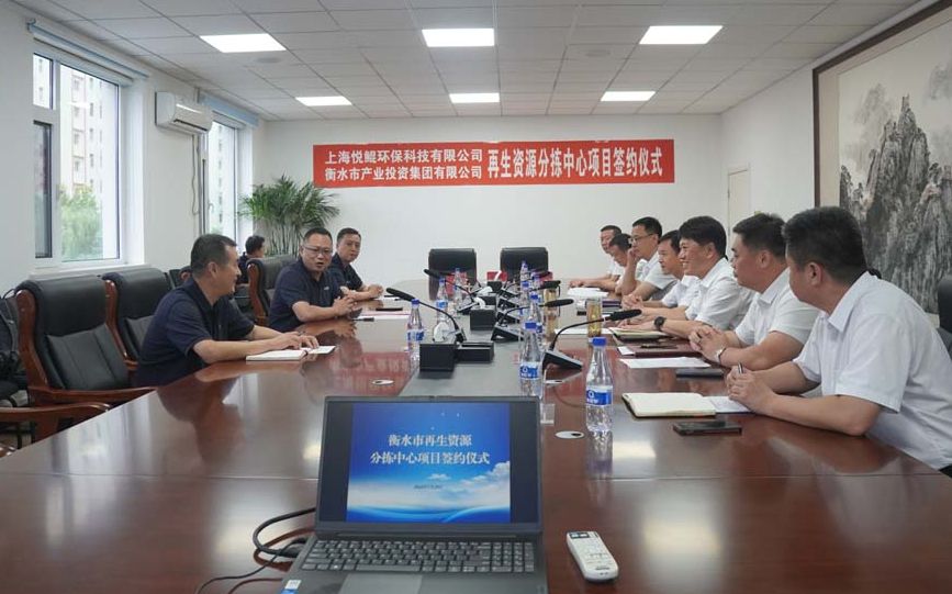 7月29日,衡水市再生资源分拣中心项目签约仪式在衡水市城投集团举行。衡水市城投集团下属子公司衡水市产业投资集团与上海悦鲲环保科技有限公司签署再生资源分拣中心项目投资合作协议。市政府相关领导及市城管综合行政执法局、市城投集团、桃城区政府、高新区管委会、上海悦鲲环保科技有限公司等相关部门和单位负责人出席签约仪式。