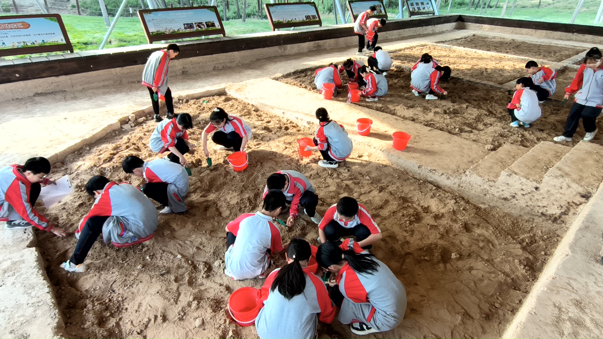 夯筑技艺展示区和考古探沟区,分别用模型和真实的遗迹,向游人展示着古人的智慧。“先了解古人取土、运土、筛土、支模、夯土的城墙夯筑过程,再看真实的夯筑痕迹,最后还能在考古营地挖‘文物盲盒’,真的不虚此行!”前来研学的中学生感叹道。这些“文物盲盒”运用3D打印技术,细腻地还原了文物的细节。