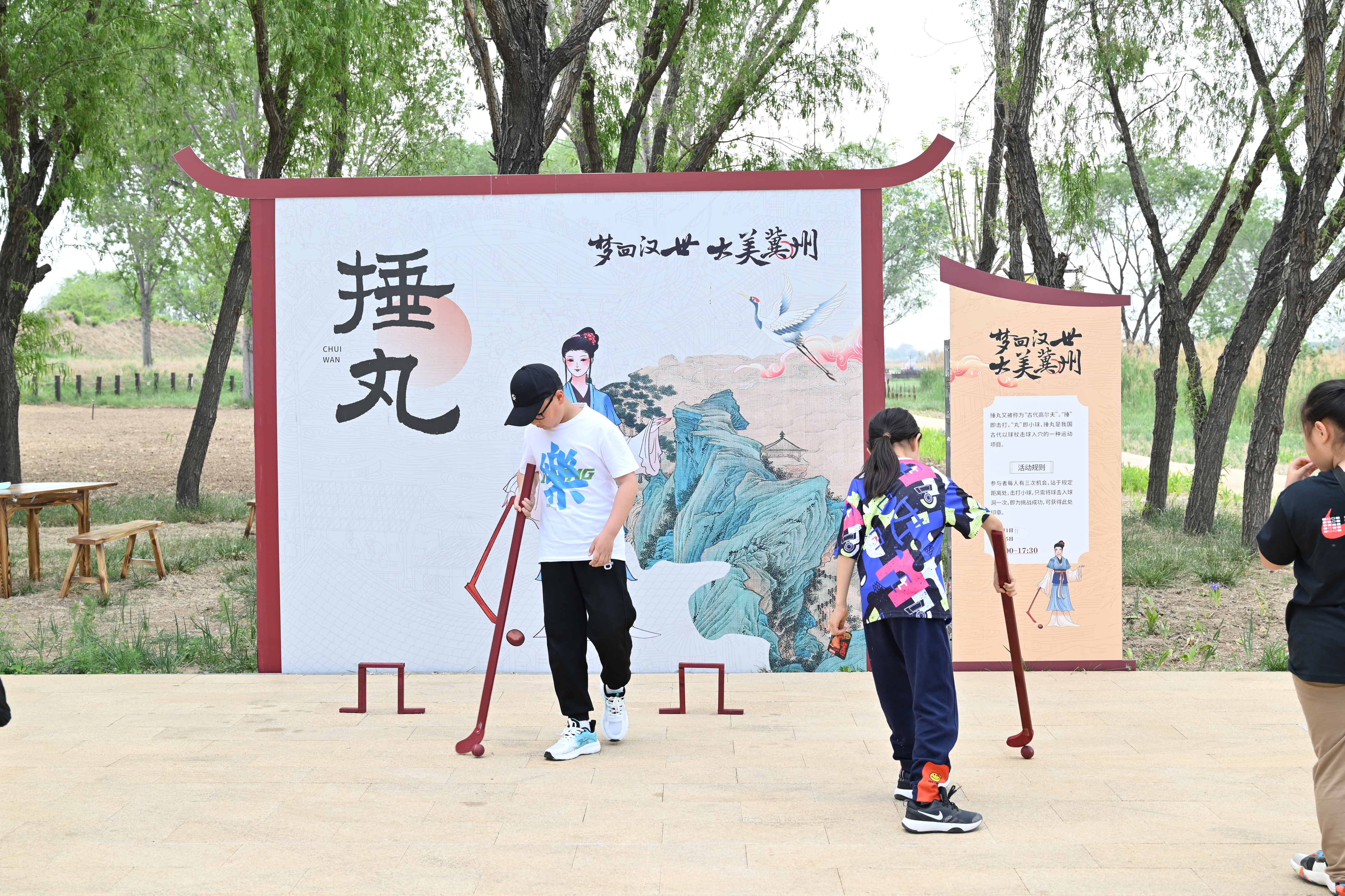为了让游客沉浸式体验,冀州区实施了古城遗址建设工程。建成了城池演变、夯筑技艺、考古营地、戍楼、光影大棚、校场、射箭场、跑马场等多处节点;开辟了文、武两条观光路线,游人可变身“武生”,“捶丸”“掷圈”“射箭”“击壤”,亦可化身“文士”,对诗、画扇、剪影、拓印;植入了考古探源、仿古集市、金龙送福等场景,打造历史文化、生态景观相融合的高品质景区,带游客“赴一场千年之约·享一回亲鸟之悦”。
